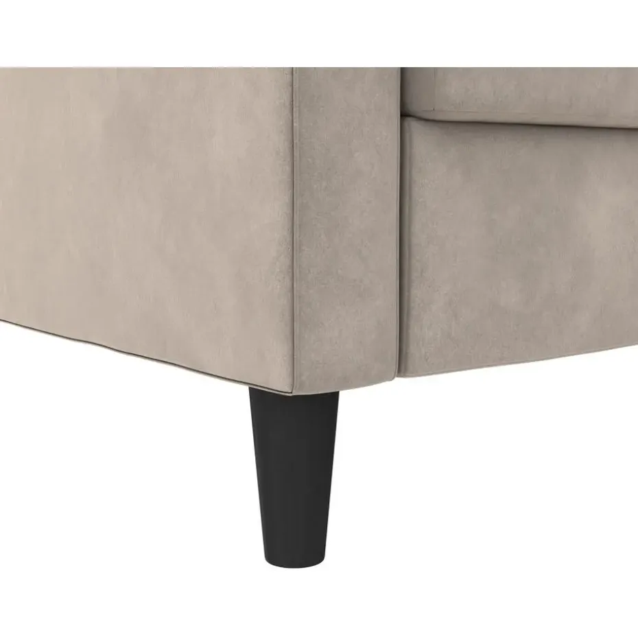 Deze slaapbank heeft een moderne stijl. Het is gemaakt van gefabriceerd hout en hoogwaardige bekledingsmaterialen. De bekleding is gevuld met schuim voor optimaal comfort. De hoekbank heeft een uitschuifbaar ligoppervlak, waardoor het geschikt is als logeerbed. Het is handmatig verstelbaar. De chaise longue kan worden geopend voor opslag.