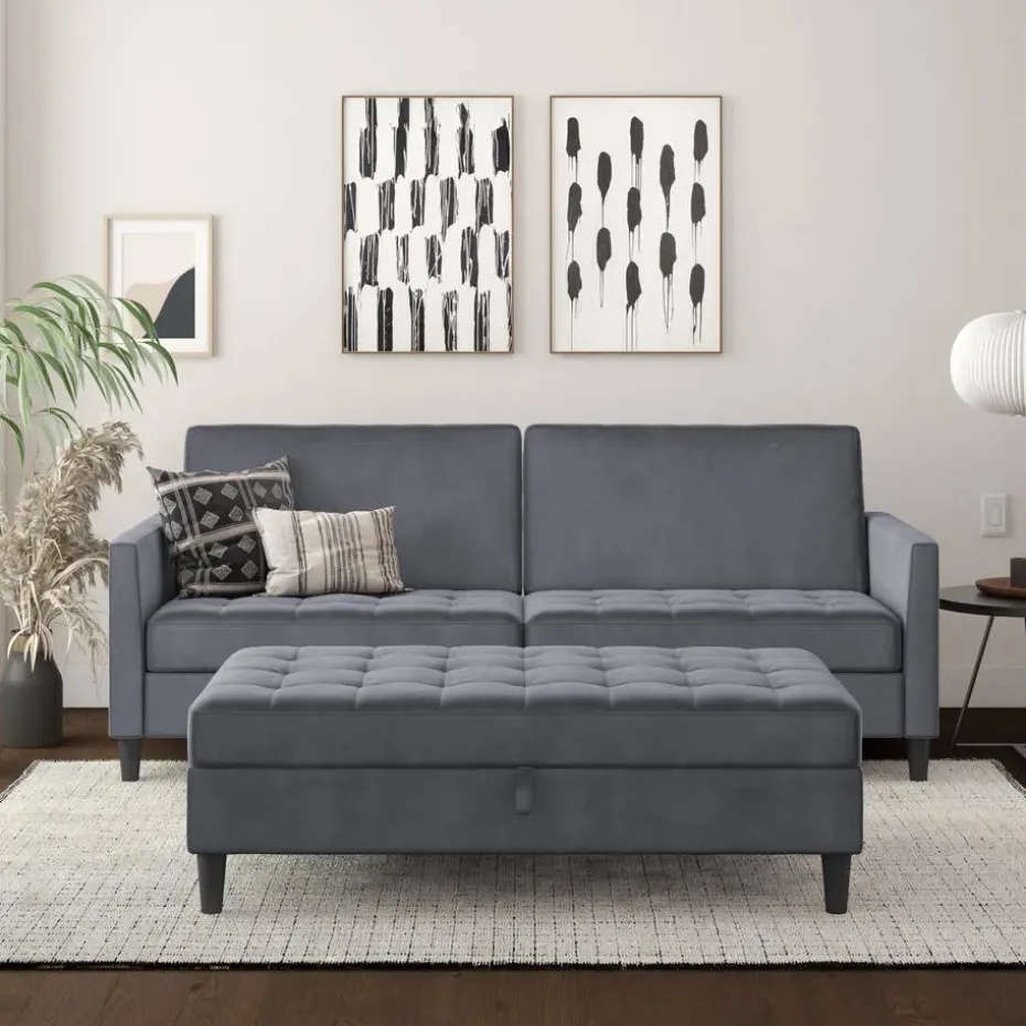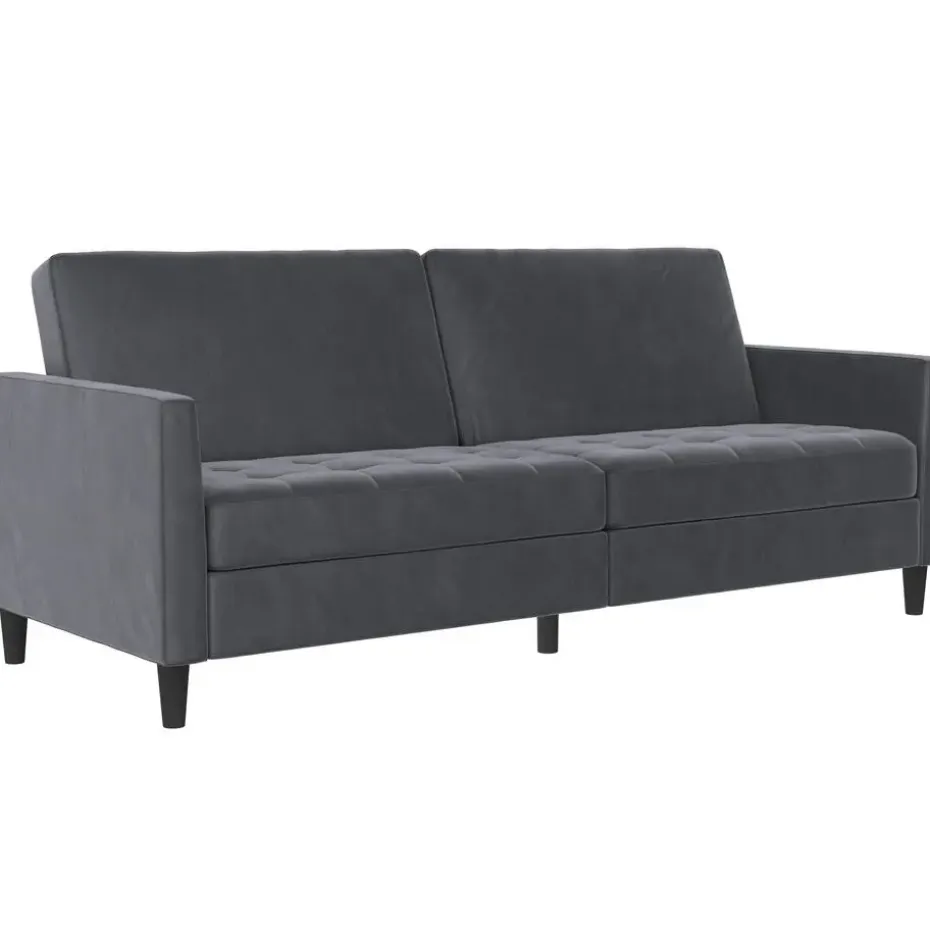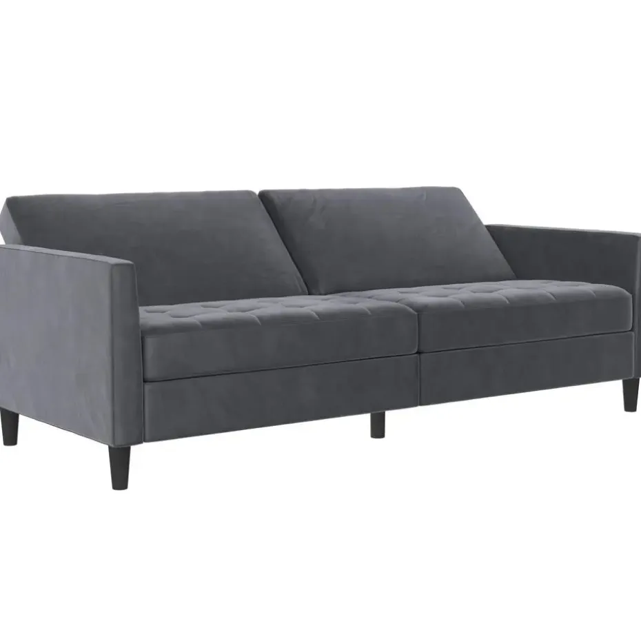 Deze bank heeft een moderne stijl. Hij is gebouwd met technisch hout en een fluwelen bekleding. De vulling is gevuld met schuim voor extra comfort. Hij heeft een uitschuifbaar slaapoppervlak en is dus zowel een slaap- als rustruimte. De bank is handmatig verstelbaar en kan gemakkelijk worden omgevormd tot een logeerbed.