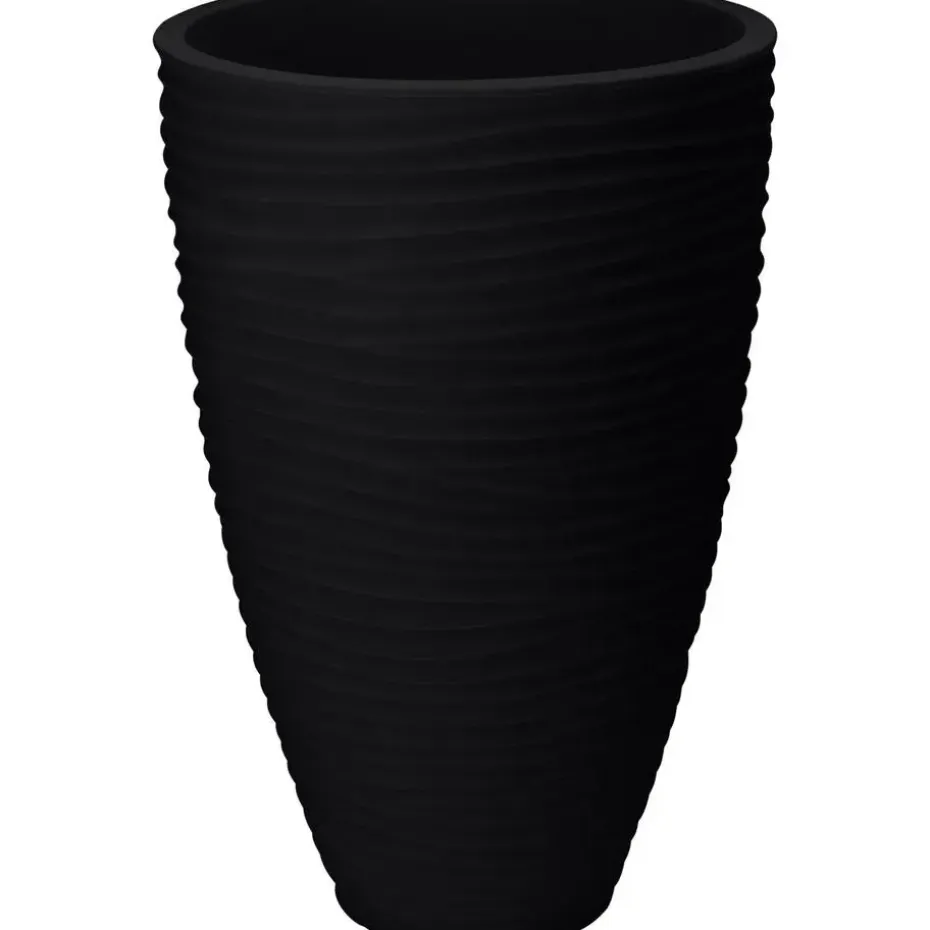 Plantenpot/bloempot Dunes gemaakt van stevig kunststof(Polyethyleen) in de kleur antraciet met ribbel strepen aan de buitenzijde. Deze mooie bloempot uit de Dunes serie is een schitterende toevoeging aan uw tuin/terras. De pot is dubbelwandig. Voor buiten gebruik. Afmetingen: D40 x H60 cm.