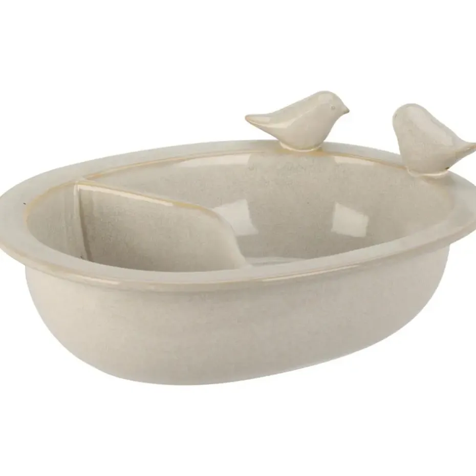 Vogelbad/voederschaal voor dubbel plezier voor alle tuinvogels. Het vogelbadje is zowel een drinkplaats als een badgelegenheid waar de vogeltjes zich lekker in kunnen wassen. Vervang het water regelmatig en maak het vogelbadje dan ook meteen schoon. De voederschaal beschikt over twee vakken waardoor de schaal zowel met water als voer gevuld kan worden.