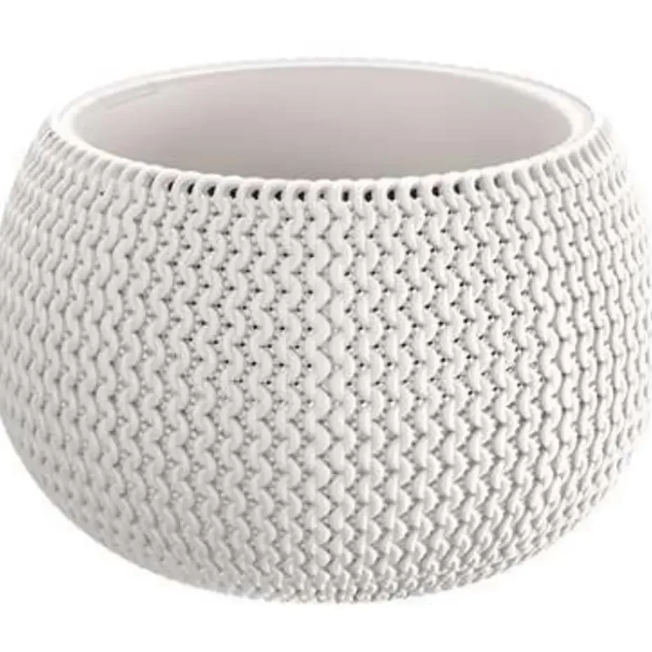 1x Stuks ronde witte Splofy bloempotten/plantenpotten 4 liter. Kras en stootvaste bloempotten/plantenbakken met de uitstraling van zachte, grof gebreide wol. De bloempotten/plantenpotten hebben geen afwateringsgaten. De bloempotten/plantenpotten zijn geschikt voor binnen en buiten gebruik. Serie: Splofy bowl. Formaat: diameter: ca 29 cm. Hoogte: ca 19,5 cm. Inhoud: 4 liter. Materiaal: kunststof. Tuin/woonkamer decoratie bloempot/plantenbak.