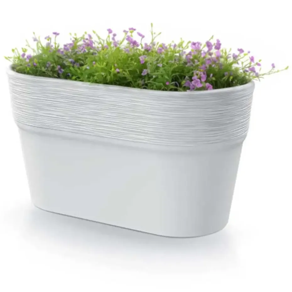 Plantenpot/bloempot uit de Windsor collectie is gemaakt van PP kunststof in de kleur ivoor wit met een strepen design patroon aan de bovenkant buitenzijde. Deze prachtige ovale vorm bloempot is echt een schitterende toevoeging aan uw tuin/terras/huis. De bloempot is voor buiten en binnen gebruik geschikt. De kunststof constructie van de plantenpot maakt dat de pot licht van gewicht is, waardoor hij makkelijk is te verplaatsten. Afmetingen: L28 x B15 x H15 cm.