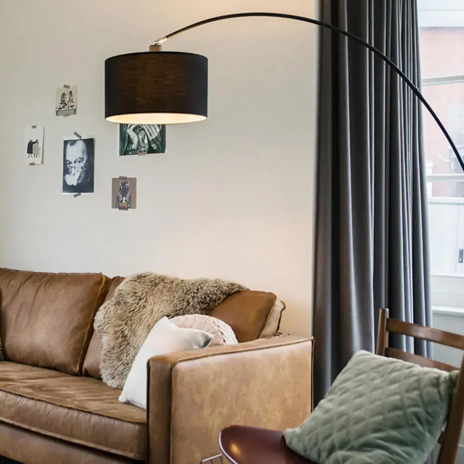 De Vinossa heeft een uitgesproken minimale uitstraling met zijn zwarte kleur in combinatie met de zwarte lampenkap. Een booglamp zorgt voor zowel functioneel als sfeerlicht in de woonkamer. Deze lamp heeft een totale hoogte van 174 cm en een lengte van 150 cm. De kap heeft een hoogte van 20 cm en een diameter van 35,5 cm. De stoffen kap geeft een gezellige sfeer in huis. De voet heeft een diameter van 35 cm en een hoogte van 2 cm. Vinossa wordt met snoer (180 cm) en stekker geleverd.