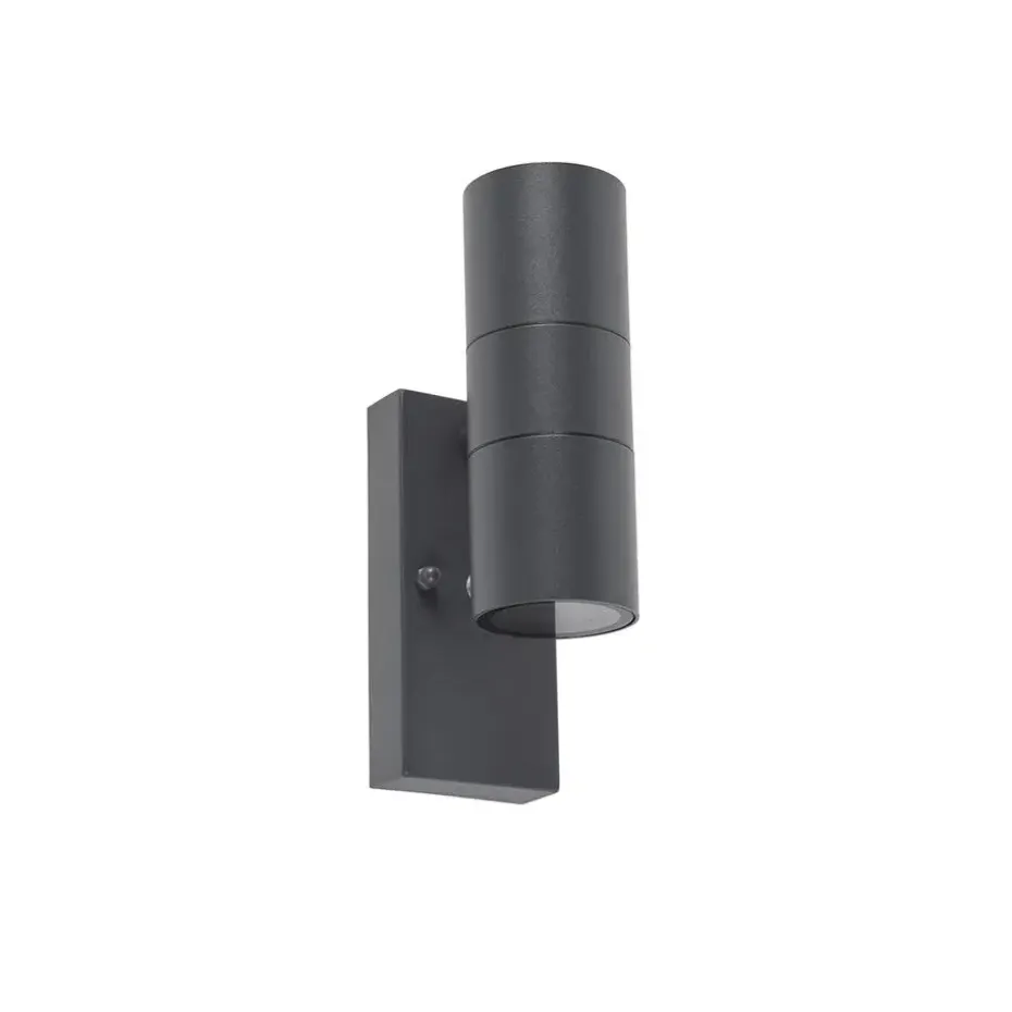 Deze wandlamp Duo uitgevoerd in RVS in de kleur donker grijs (antraciet) is een super functionele buitenlamp met strakke vormgeving. Er zit namelijk een LUX licht-donker sensor op (schemersensor) ; de buitenlamp springt op wanneer het donker wordt en gaat uit wanneer het weer licht wordt. Super handig en hij is er als set van 2!