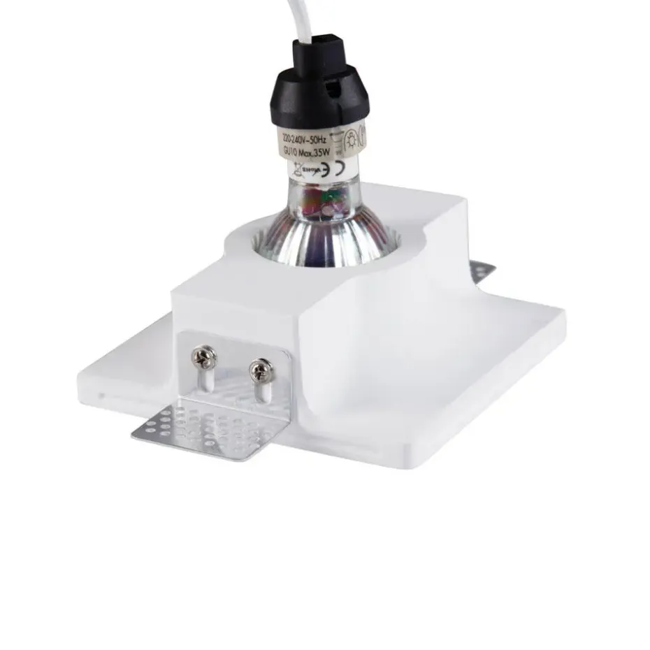 Super strakke tijdloze inbouwspot uitgevoerd in een gipsen afwerking. Er zit geen buitenrand om de armatuur, je deze spot dus perfect en randloos in je plafond verwerken. Het plafond loopt hierdoor door in de verlichting en maakt deel uit van het geheel.