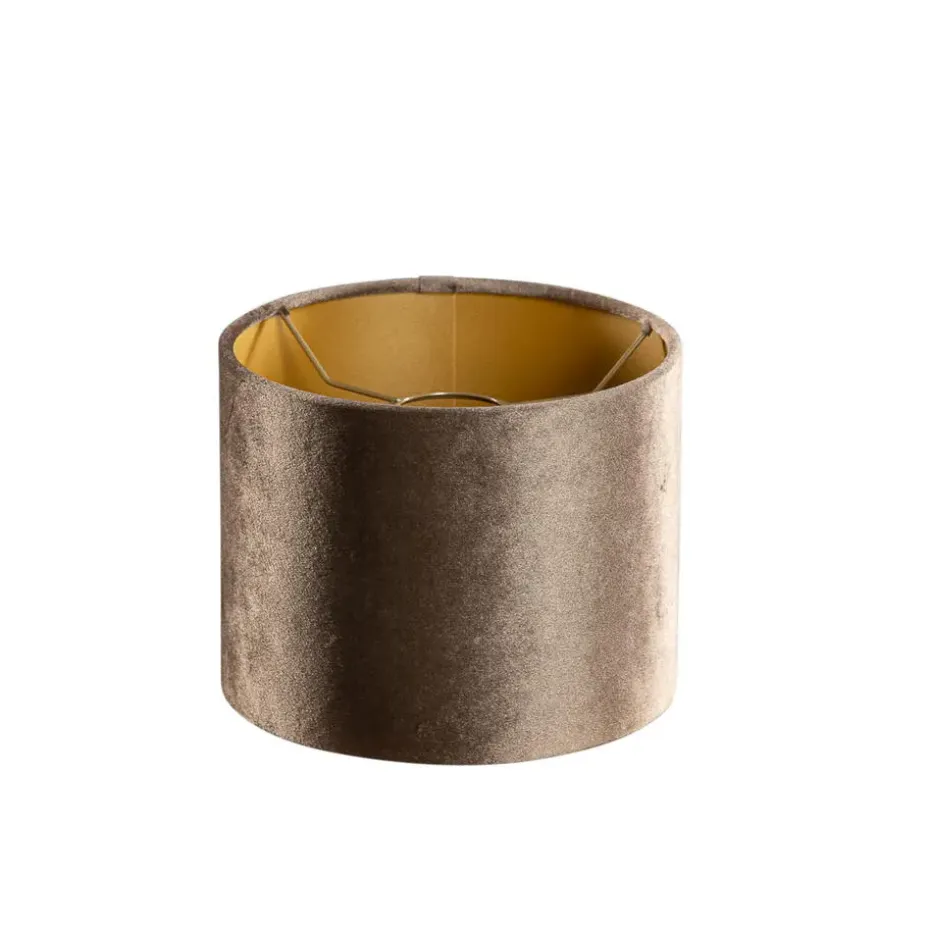 Klein maar verfijnd – deze compacte velours lampenkap in bruin met een glanzende gouden binnenkant geeft iedere ruimte een stijlvolle boost. Het zachte fluweel straalt warmte uit en de gouden binnenzijde zorgt voor een rijke, warme lichtgloed wanneer de lamp aan is. Met een diameter van 18 cm is deze kap ideaal voor kleinere tafellampen of wandlampen, waar hij meteen een vleugje luxe toevoegt zonder te overheersen. Perfect voor wie op zoek is naar een subtiele maar stijlvolle upgrade in het interieur. Maak jouw ruimte compleet met deze elegante lampenkap!