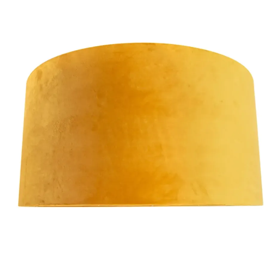 Deze okergele velours lampenkap is een echte eyecatcher! Met deze lampenkap kun je jouw vloerlamp of hanglamp voorzien van een sfeervol uiterlijk waarbij de kap als sfeermaker fungeert. Deze lampenkap heeft een okergele kleur, waardoor je lamp meteen een elegante uitstraling krijgt. Naast het unieke design aan de buitenkant is de lampenkap ook prachtig met goud afgewerkt aan de binnenkant, dat zorgt voor een gezellig lichteffect in huis. Zorg ook nog voor een lichtbron passend in een E27 fitting om te zorgen voor gezellige verlichting. Deze lampenkap heeft een diameter van 50 cm en een hoogte van 25 cm. Een sfeermaker in de woonkamer of slaapkamer.