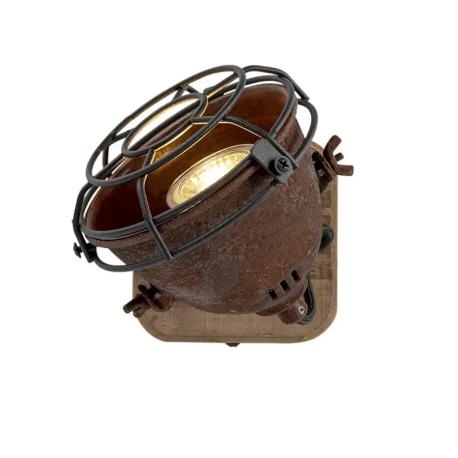 Een stoere spot, ideaal voor in een industrieel interieur! De combinatie van het roestbruin staal en de houten montageplaat geeft deze lamp een industriële look. Staat super mooi in de hal of in de woonkamer. De spot is kantelbaar en daardoor perfect om donkere hoekjes in huis op te vullen met licht!