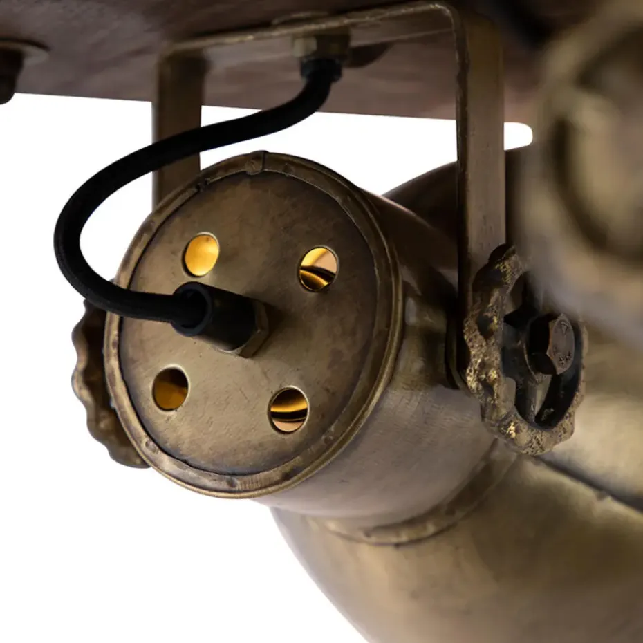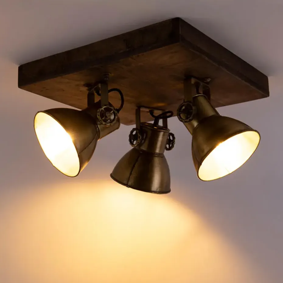 Deze plafondlamp Mangoes is een mooie vintage lamp voor in jouw interieur! De combinatie van mangohout met de stalen kappen in het brons geeft een stoere uitstraling. De gouden binnenkant zorgt voor een warm effect. De lamp heeft een hoogte van 27 cm. De montageplaat heeft een breedte en lengte van 48 cm. De lampenkappen hebben elk een diameter van 18 cm en een hoogte van 16 cm. De plafondspot wordt exclusief lichtbron geleverd. Zorg dus zelf voor drie lichtbronnen met E27 fitting (max. 25 Watt) die er ook nog leuk uitziet, omdat deze zichtbaar is. De lamp is dimbaar met een externe dimmer, deze is niet inbegrepen. Mangoes is een mooie toevoeging aan je interieur die zorgt voor extra sfeer! Perfect voor in de woonkamer, eetkamer of slaapkamer.