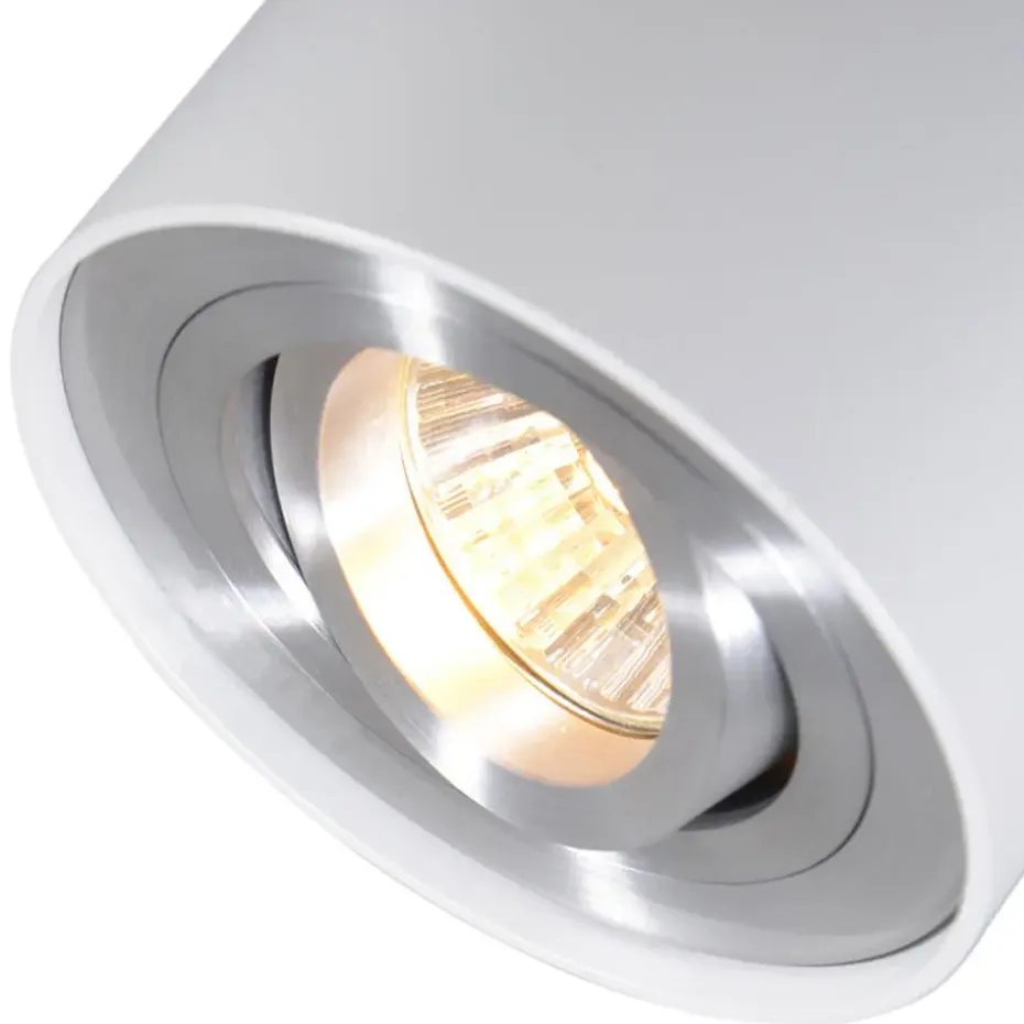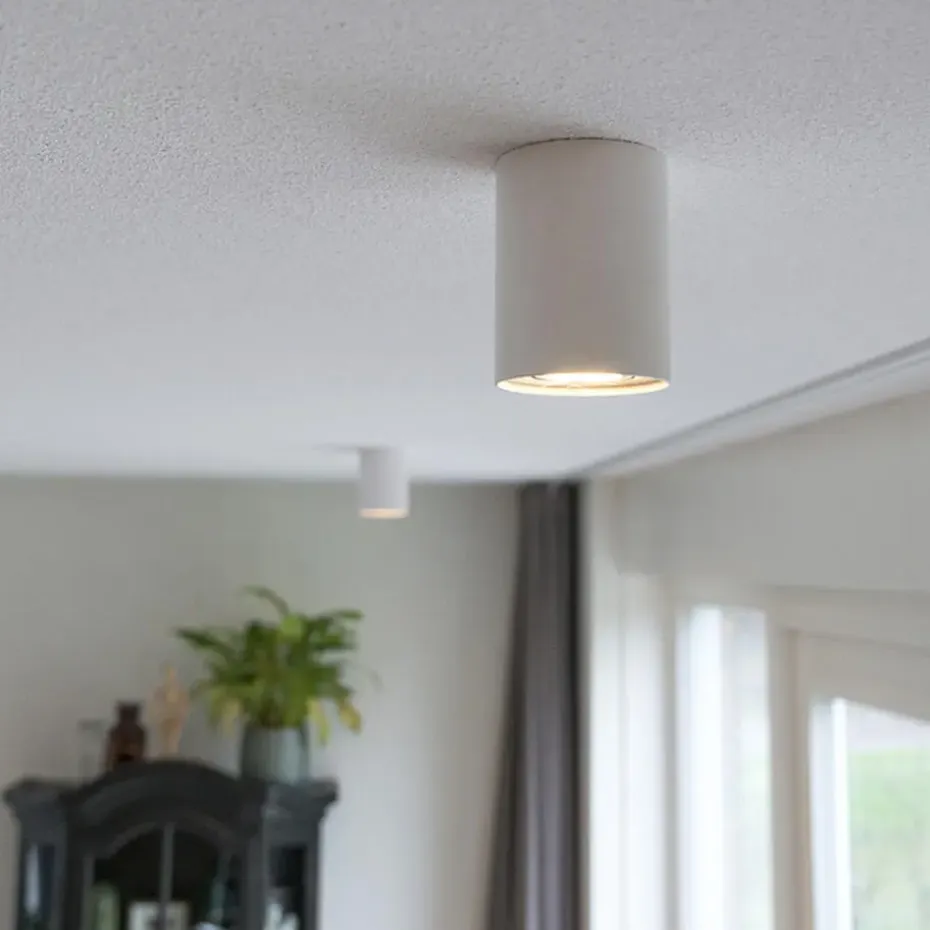 Deze Rondoo Up opbouwspot past in ieder interieur. Hij heeft een diameter van 9,5 cm en een hoogte van 12,5 cm. De afmeting van de montageplaat heeft een diameter van 9,5 cm. Deze spot is gemaakt van aluminium in een witte kleur en heeft een luxe kwalitatieve uitstraling. De plafondpot heeft een GU10 fitting . Met een GU10 lichtbronnetje van maximum 50 Watt maak je hem helemaal af. Een leuk extraatje aan deze plafondspot is dat hij kantelbaar is: verlicht dus je ruimte hoe jij het wil! De Rondoo Up is ook dimbaar (dimmer niet inbegrepen). Simpel maar oh zo stijlvol voor jouw plafond deze opbouwspot Rondoo Up.