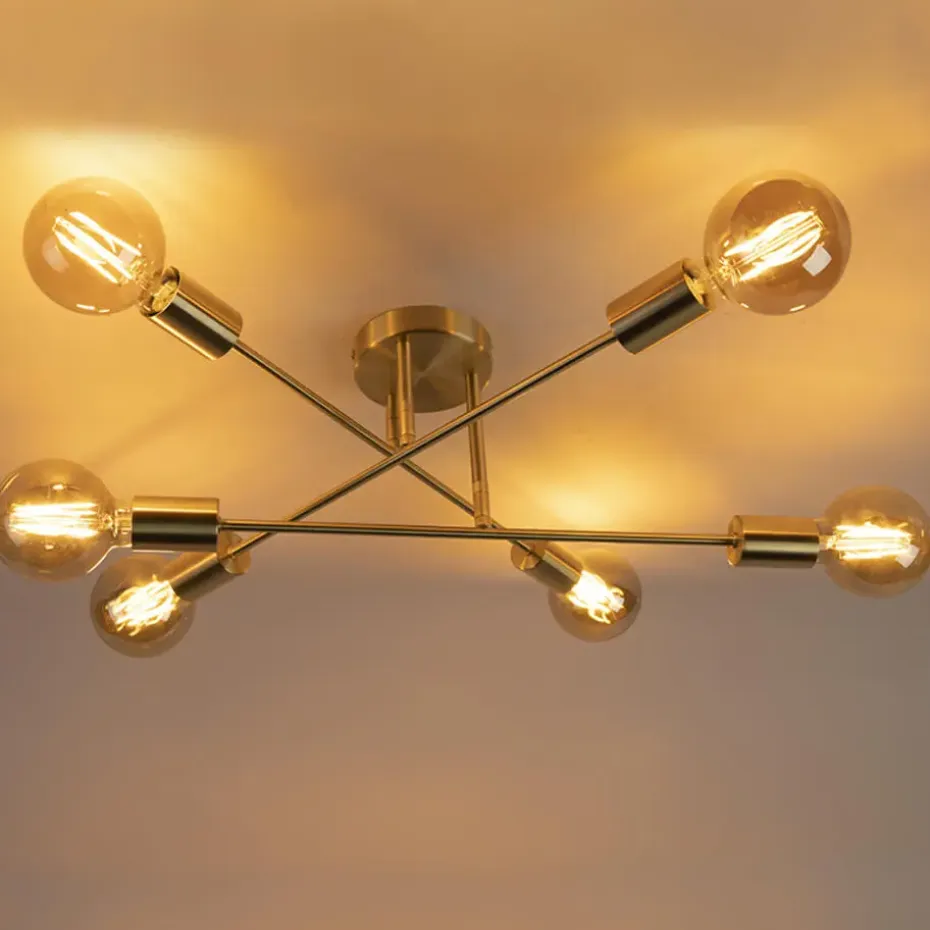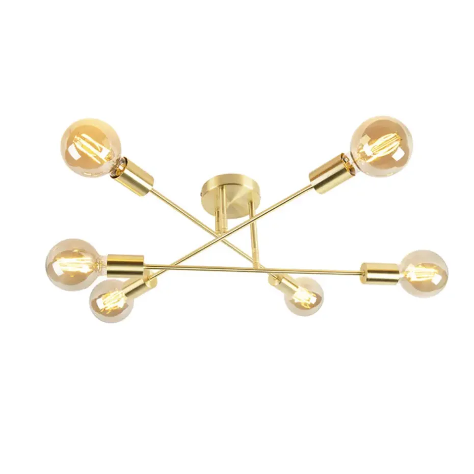 Een hele bijzondere eye-catcher, de Sydney is een 6-koppige plafondlamp met een modern-industriële look. De messing kleur maakt de lamp ook een tikje romantisch.