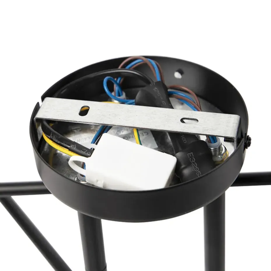 De lamp heeft een diameter van 55 cm en een hoogte van 20 cm. De montageplaat heeft een diameter van 12 cm. Je maakt de lamp af met zes lichtbronnen met een E27 fitting (max. 40 Watt), deze moeten wel nog los bijbesteld worden. Kies voor mooie filament lichtbronnen voor een extra moderne look. De lamp is dimbaar met een externe dimmer (dimmer niet inbegrepen).
