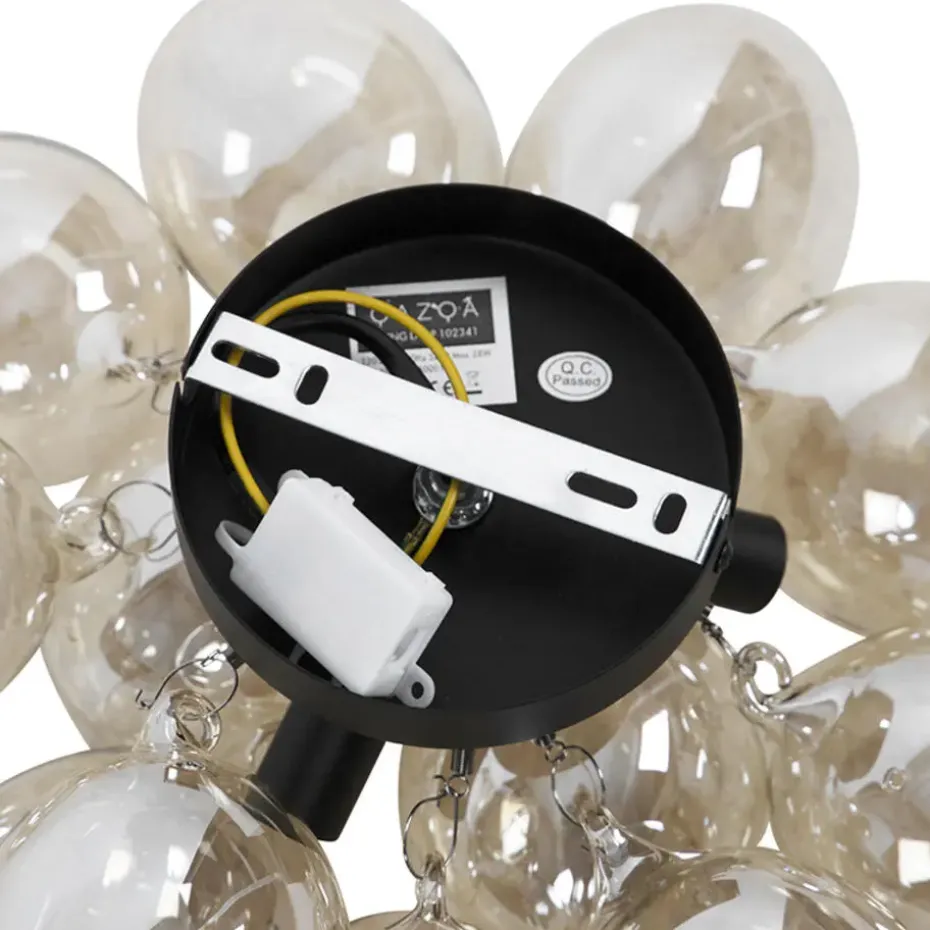 Een stijlvolle topper, deze Uvas! Een blikvanger die elke ruimte in huis doet opleven. Zo kan hij de show stelen in de woonkamer of slaapkamer. Ook op kantoor is deze Uvas een streling voor het oog. De combinatie van het zwarte snoer en de amberkleurige glazen lichtpunten geeft hem een super Art Deco look.