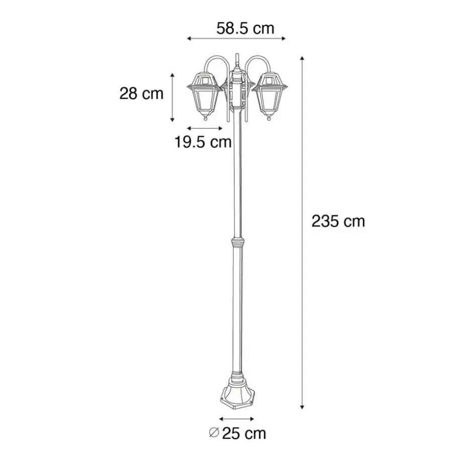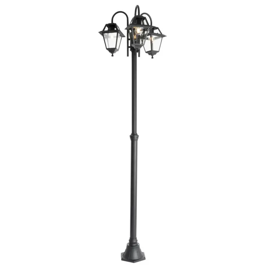 Breng een vleugje nostalgie naar je tuin met de Berta klassieke buitenlantaarn. Met zijn indrukwekkende hoogte van 235 cm en drie lichtpunten, zorgt deze lantaarn voor een elegante uitstraling in elke buitenruimte. De zwarte afwerking en het klassieke ontwerp doen denken aan ouderwetse straatverlichting, terwijl de glazen panelen een warm en uitnodigend licht verspreiden. Perfect voor het verlichten van paden, opritten of terrassen, en dankzij de IP44-certificering is hij weerbestendig. Geef je tuin een stijlvolle upgrade en laat het stralen met de Berta lantaarn!