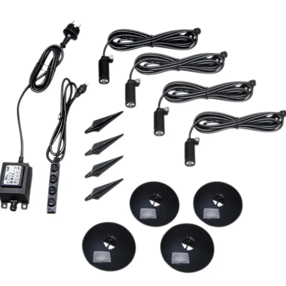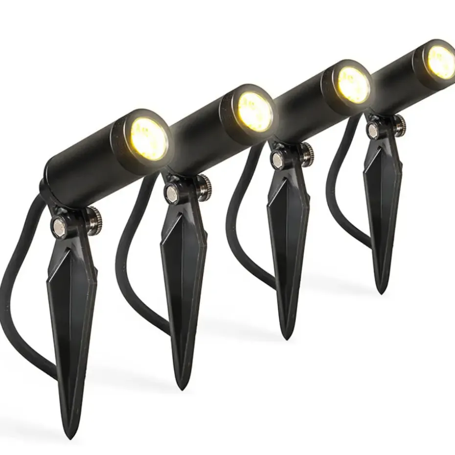 Set van vier prikspots Garly voor in de tuin. Ze zijn klein en dus perfect om te plaatsen in jouw tuin! Ze worden geleverd compleet met voet (diameter 10 cm) én pin, dus je kunt zelf kiezen hoe je deze set wilt toepassen. Ondanks het kleine formaat zijn ze goed in het uitlichten van bijvoorbeeld een boom in je tuin. Het is indirect licht, wat het voor jou echt gezellig maakt om in de avond buiten te zitten!