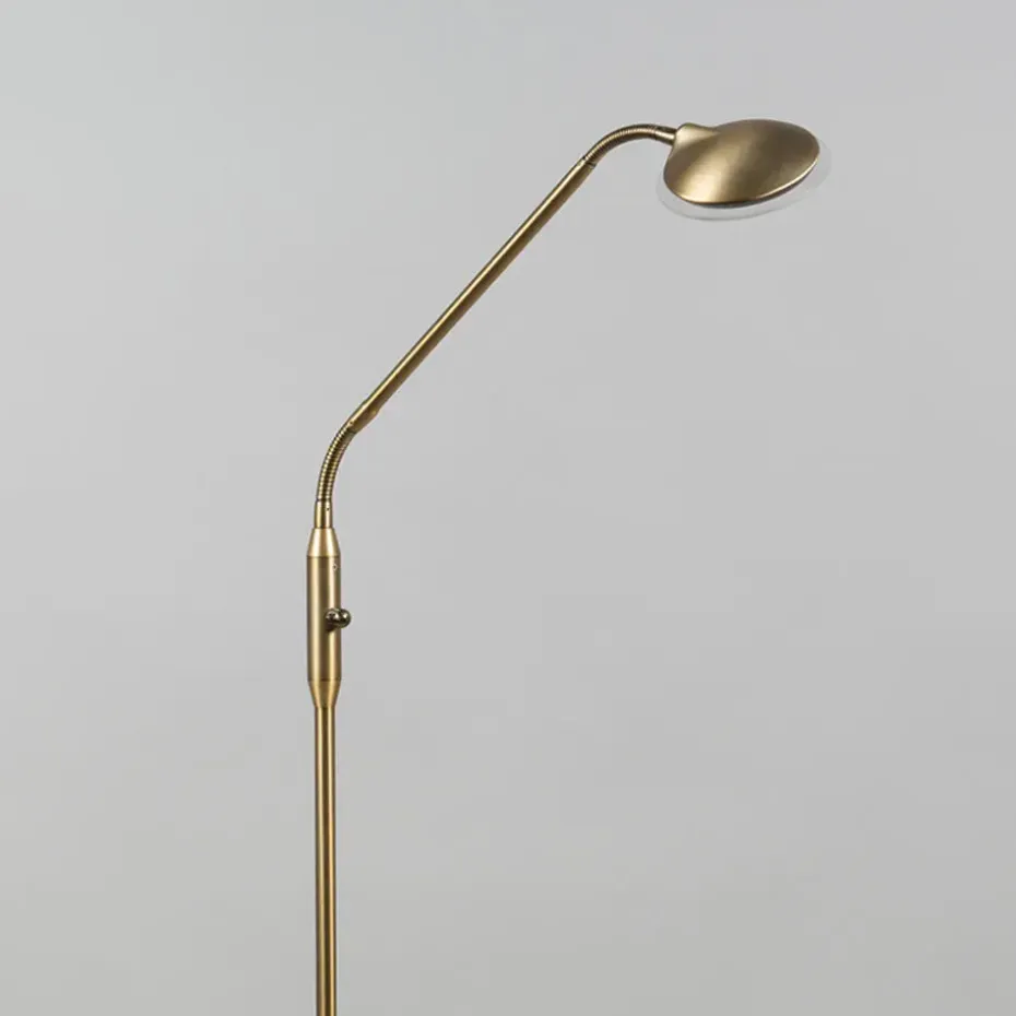 Staak de zoektocht naar de perfecte dimbare vloerlamp maar, je hebt hem gevonden! Het slanke postuur zal zich perfect lenen voor diverse interieur-stijlen, ook die van jou! De LED lampen zitten gemonteerd aan een flexibele buis waardoor je het licht laat schijnen daar en waar je het nodig hebt! De lamp is gemakkelijk te bedienen via de dimmers op het standaard om het perfecte licht te creëren. De lamp is tevens erg energiezuinig doordat het een LED module heeft van 450 lumen, 3000 Kelvin en 20.000 branduren. De lamp heeft een minimale hoogte van 128 cm en een maximale hoogte van 149 cm en een diameter van 23 cm. De voet heeft een diameter van 23 cm. Een nuttige lamp voor iedereen die wat extra licht wil.