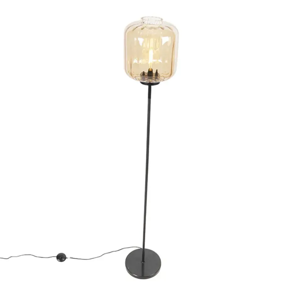 Een echte design eyecatcher, deze Qara vloerlamp. Mooi afgewerkt armatuur in tijdloos zwart met een glazen kap in amberkleur. Wat een top combinatie! Het amberkleurige glas zorgt voor een zacht en diffuus licht in de ruimte. Hij heeft een hoogte van 161 cm en de voet heeft een diameter van 25 cm. Let op: deze lamp wordt geleverd zonder lichtbron. Zorg dus zelf nog voor een leuke E27 lichtbron (max. 60 Watt) om je Qara helemaal te doen stralen! Je kunt hem dimmen met een externe dimmer (niet inbegrepen). Deze lamp valt op door zijn exclusieve glamour stijl, een echte meerwaarde in jouw design woonkamer! Ook in de hal fungeert hij als sfeermaker. Ga voor luxe in huis met onze Qara.