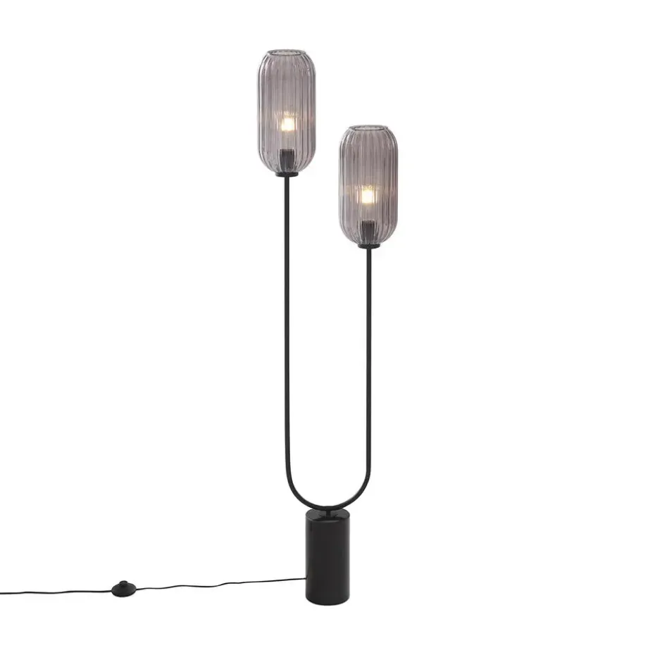 Zeg je Art Deco interieur, dan zeg je Rid! Deze vloerlamp heeft een zwarte kleur en is gemaakt van smoke glas. Rid is een echte eyecatcher voor in je interieur. De lamp heeft een hoogte van 150 cm en is 40 cm lang. De voet heeft een dimater van 12 cm en de kap heeft een diameter van 15 cm. De 2 lichtpunten maken het een echte sfeermaker! Zorg dat je lichtbronnen met E27 fitting erbij besteld om de lamp compleet te maken. Deze lamp komt met een snoer en stekker. Het snoer is 250 cm lang. Deze vloerlamp is dimbaar, maar een dimmer is niet inbegrepen. Naar deze vloerlamp blijf je maar staren: Rid mag niet ontbreken in jouw interieur!