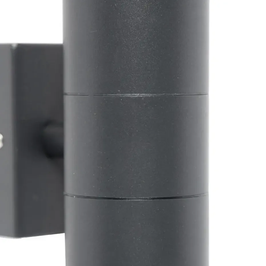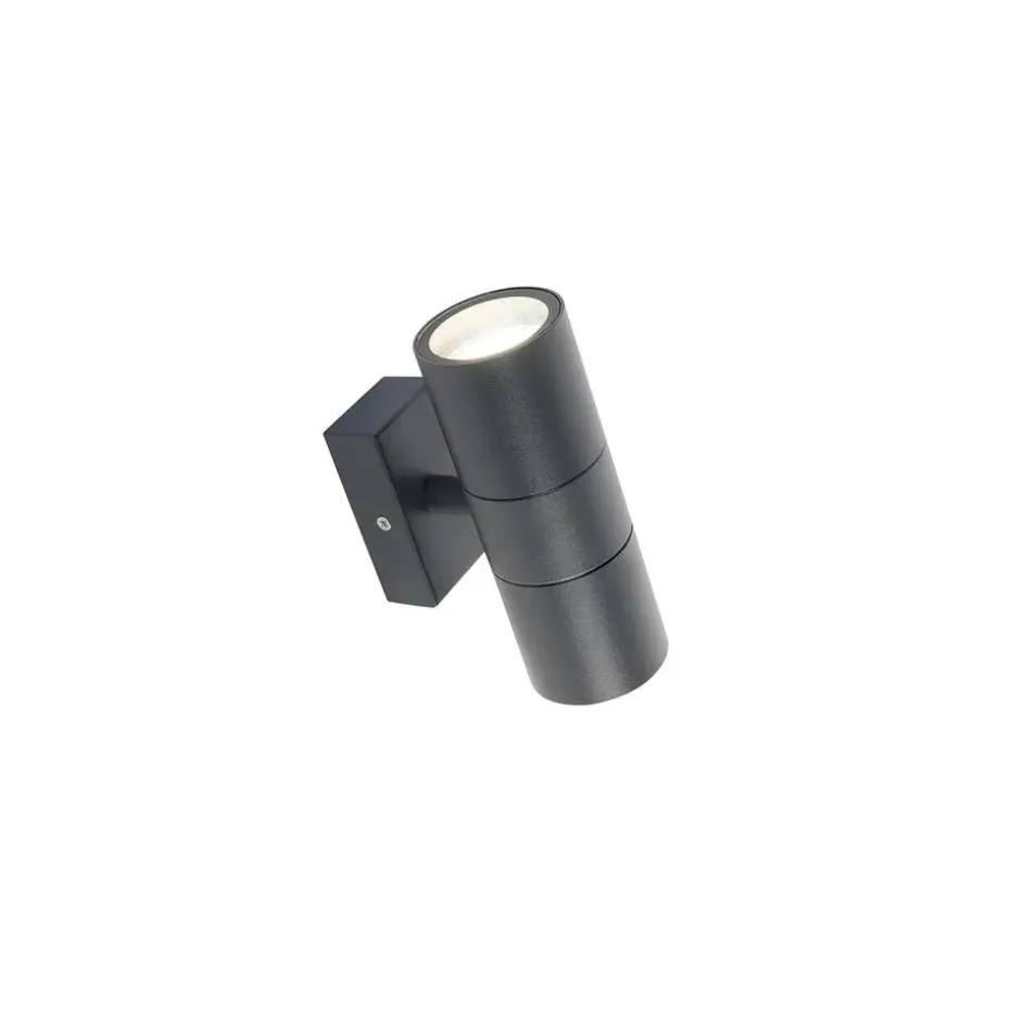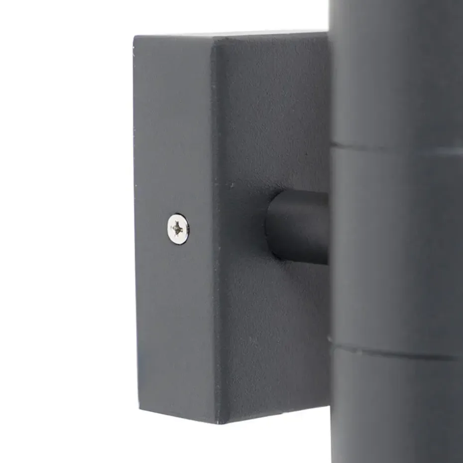 Deze wandlamp Duo is een super functionele buitenlamp met strakke vormgeving uitgevoerd in donker grijs (antraciet). Het licht van deze lamp straalt naar boven en naar beneden. Dit geeft een prachtig effect op de muur. Met een IP waarde van IP44 kan deze wandlamp tegen de regen. Ook is hij gemakkelijk aan te sluiten op 230 volt.