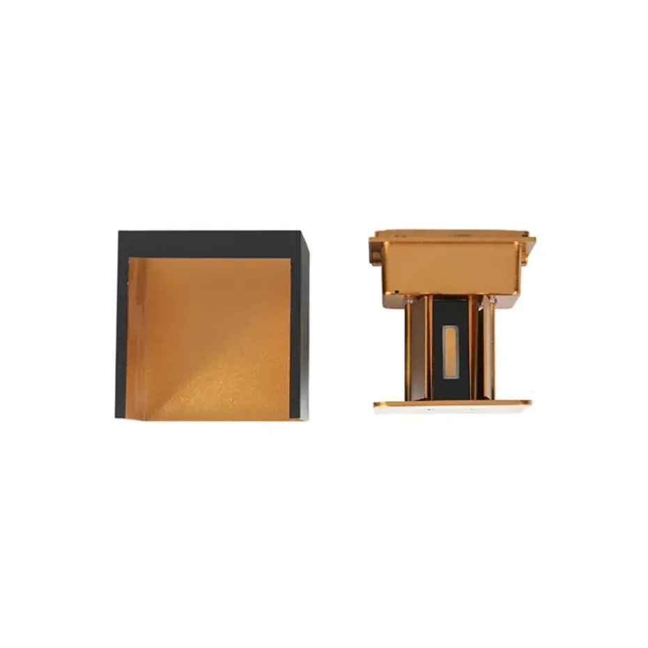 Voeg sfeer toe met Edwin. Deze wandlamp is geschikt voor zowel binnen als buiten. Door zijn hoge IP54 waarde is hij namelijk spatwaterdicht. De lamp is gemaakt van aluminium. De buitenzijde is afgewerkt in het zwart en de binnenzijde in goud/messing, dat zorgt voor een warm lichteffect wanneer de verlichting aan staat. Hij heeft een diepte van 10 cm, hoogte van 10 cm en lengte van 10 cm. Edwin beschikt over 2 geïntegreerde LED lampen. Deze hebben een lichtvermogen van 360 lumen en 2700 Kelvin. De binnenzijde van de lamp zorgt voor een prachtig strijkeffect op muur, zowel aan de boven- als de onderkant van de lamp. Wandlamp Edwin past perfect bij de moderne woonstijl, maar eigenlijk kan iedereen wel een Edwin gebruiken!