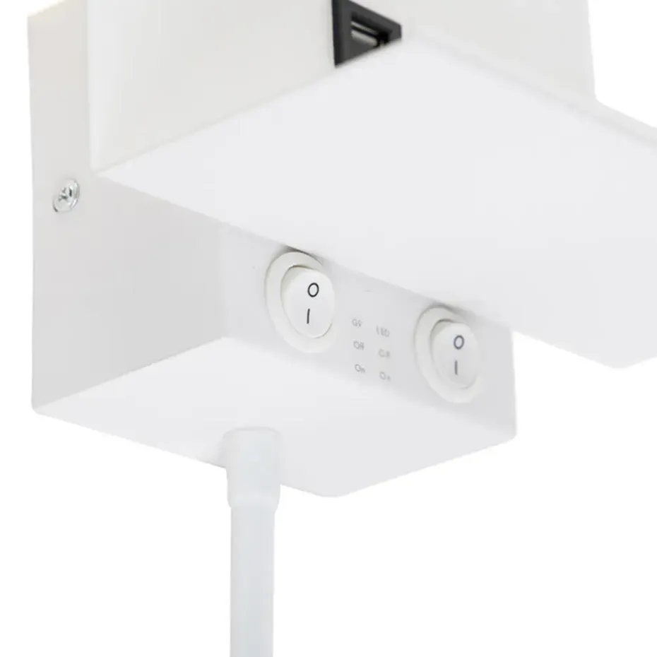 Een multifunctionele wandlamp, deze Flero. Deze lamp is afgewerkt in een witte kleur met aansluiting voor USB voor het opladen van je tablet en/of smartphone! Heel functioneel en tijdloos.