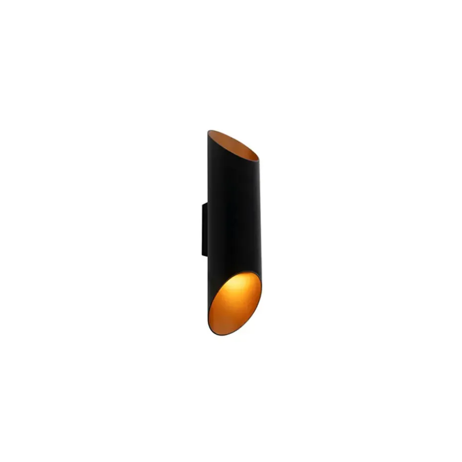Deze Organo L aluminium wandlamp is tijdloos afgewerkt in zwart met een ronde vorm en gouden binnenkant. De gouden afwerking aan de binnenkant van de lamp zorgt voor een gezellige en warme sfeer in huis! De lamp heeft een hoogte van 40 cm, diepte van 11,4 cm en een lengte van 9,6 cm. Het montageplaatje heeft een diepte van 2,5 cm en een hoogte van 10 cm. Je maakt deze design lamp compleet met twee GU10 lichtbronnen van max. 50 Watt. Let op: deze lichtbronnen moet je nog apart bij bestellen in onze webshop. Hij is tevens dimbaar met een externe dimmer (bv. je wandschakelaar). Dimmer niet inbegrepen. Maak het dus gezellig in huis met onze Organo L. Door het open design aan de onder- en bovenkant geeft hij een mooi strijklicht aan de muur. Een tijdloos hebbeding voor in de hal, in de woonkamer of in de slaapkamer!