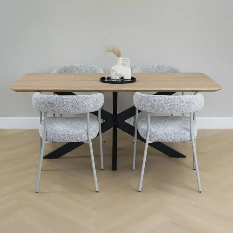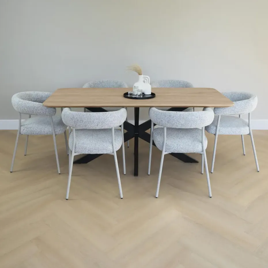 Met een lengte van 180 cm en een breedte van 90 cm biedt deze tafel comfortabel plaats aan zes stoelen. De hoogte van 76 cm maakt het tafelen aangenaam en past bij vrijwel alle standaard eetkamerstoelen. De afgeronde randen zorgen niet alleen voor een zachtere look, maar maken de tafel ook vriendelijker in gebruik, zeker in een huishouden met kinderen.