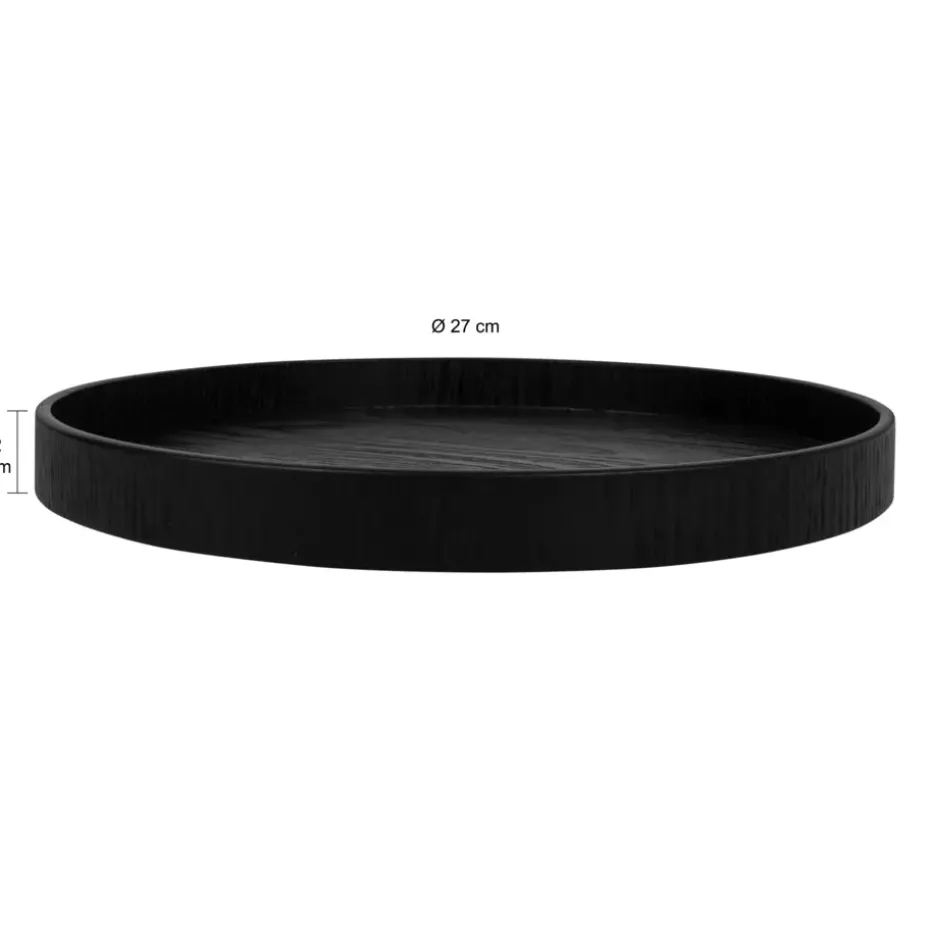 Een houten ronde dienblad komt eigenlijk altijd wel van pas. Serveer de lekkerste hapjes en drankjes eenvoudig op dit mooie dienblad. Daarbij heeft dit houten dienblad een mooie zwarte kleur. Hierdoor misstaat het blad zeker niet op tafel. Gebruik het dienblad tijdens de dagelijkse maaltijden of gebruik het op een feestje. Door de diameter van 27 centimeter passen er meerdere glazen en/of bordjes op het blad. Dat maakt het blad erg praktisch in gebruik.