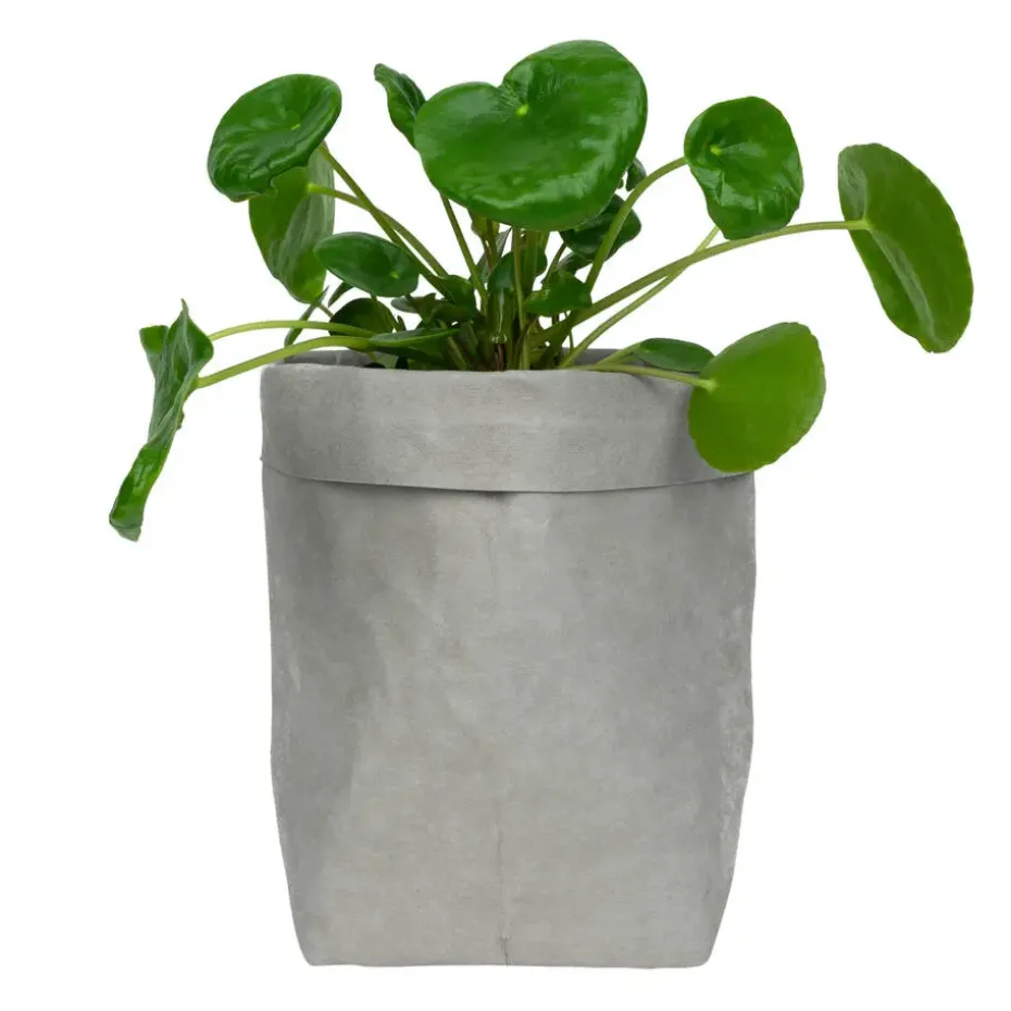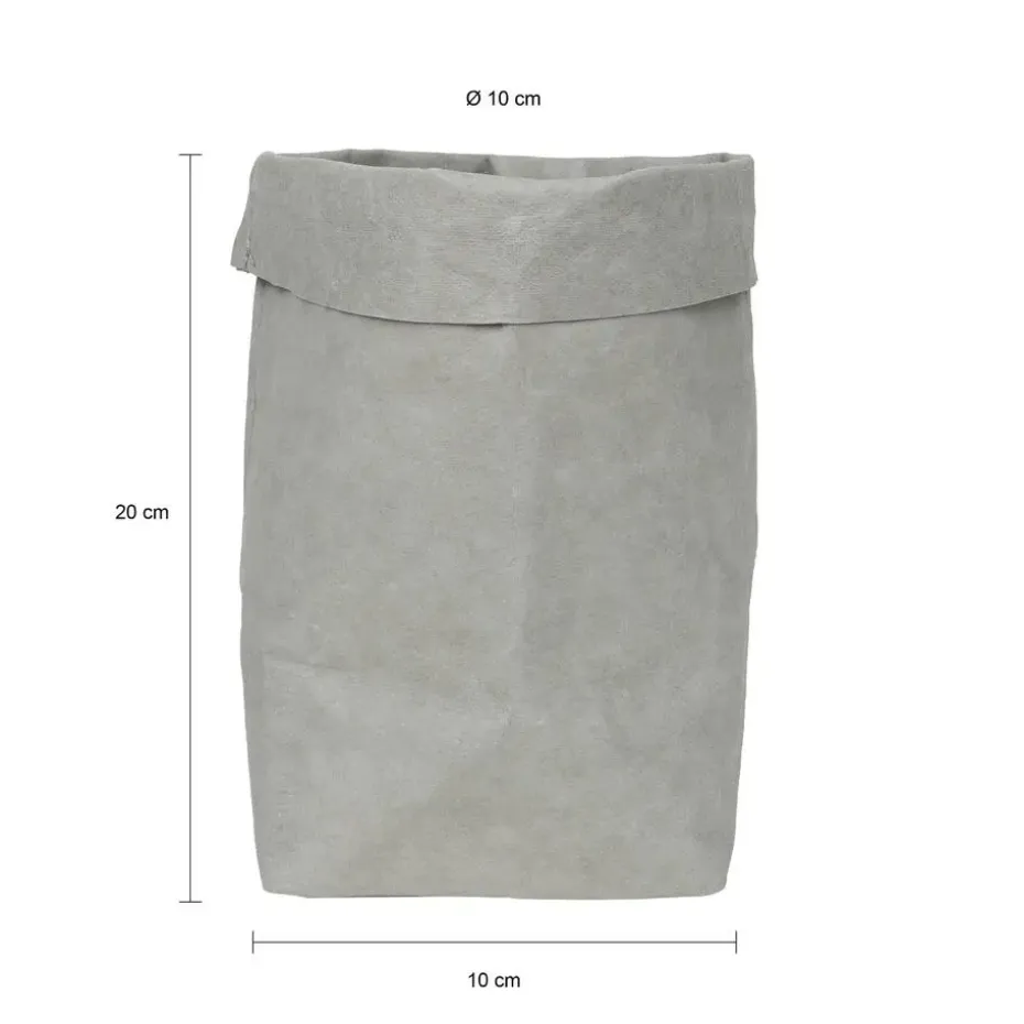 Degrijze plantenzak van kraftpapier heeft een strak en modern uiterlijk. Hierdoor staat deze bloempot prachtig in een modern interieur. De plantenzak is gemakkelijk te combineren met andere bloempotten en staat mooi bij diverse soorten planten. Het is een leuke aanwinst in de woonkamer, maar staat ook leuk op de slaapkamer. Of vul de plantenzak met een kruidenplantje en zet deze in de keuken. Zo creëer je je eigen kleine kruidentuintje binnen. Hetgrijze kraftpapier heeft een natuurlijke uitstraling en laat zich daardoor goed combineren.