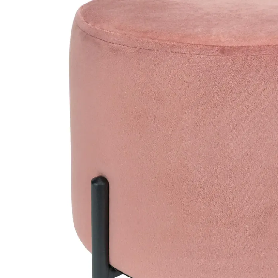 De poef is gemaakt van fluweel in de kleur roze, wat ervoor zorgt dat de fluwelen poef opvalt. De decoratieve poef heeft vier poten, die op vier punten rondom de ronde zitting geplaatst zijn. De manier waarop de poten bevestigd zijn, zorgt ervoor dat de fluwelen poef zich onderscheidt van andere modellen.