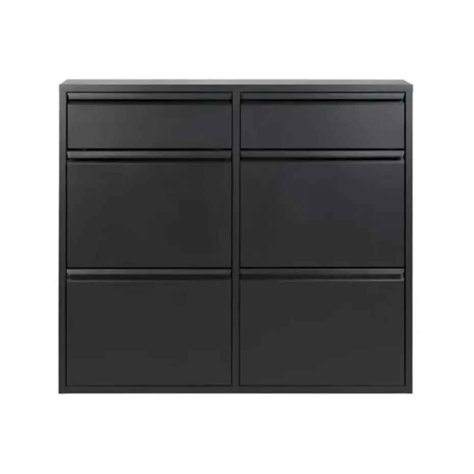 Deze Pippen schoenenkast is zowel functioneel als decoratief. De strakke lijnen passen perfect in een hedendaagse woning. Ergens doet ze ook vintage aan en ze heeft ook een industrieel gehalte. Het is een ondiepe kast, maar je hebt toch nog ruimte om ze te decoreren. Plaats er fotolijsten of een plant op. Hang een spiegel of een wandplank boven de kast en plaats een staande kapstok ernaast. Zo krijgt je schoenenhoekje plots een ongeziene charme.