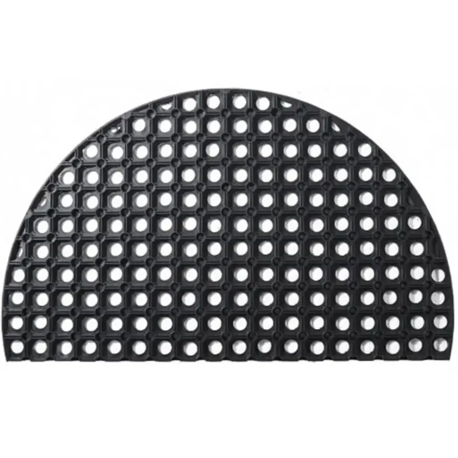 Deze halfronde rubberen ringmat, met de afmetingen 45 bij 75 cm, is perfect te gebruiken als deurmat bij jouw voor- en achterdeur. Wanneer je vieze schoenen hebt, zal deze ringmat ervoor zorgen dat het meeste vuil er af wordt geschraapt.