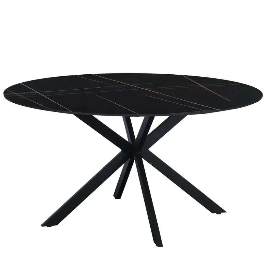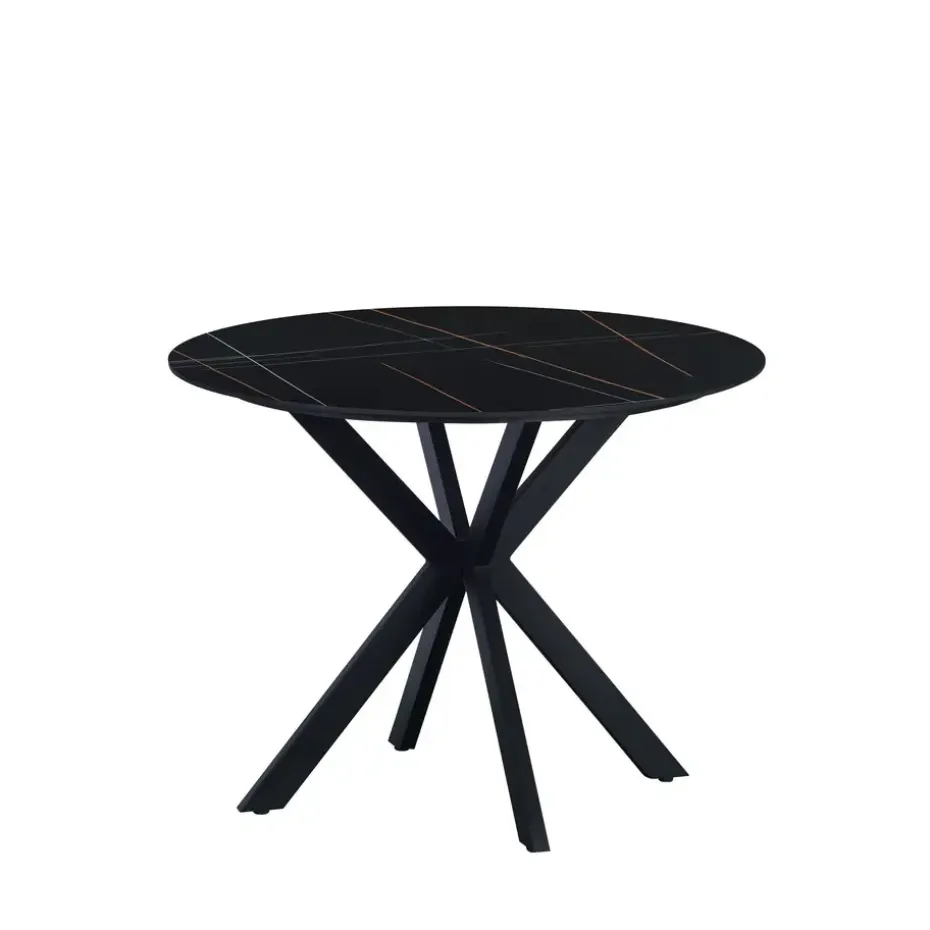 De spinpoot van eettafel Yuna is gemaakt van zwart gepoedercoat metaal. De tafel is gemakkelijk te monteren.