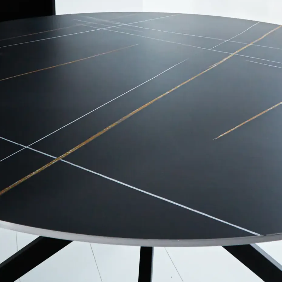 Het blad van de ronde eettafel is gemaakt van sintered stone en bevat een prachtige marmerlook. Sintered stone is een populaire steensoort wat vooral gebruikt wordt in de keukenindustrie. Het is onbreekbaar, water- en vlekproef en gemakkelijk schoon te maken. Vandaar dat sintered stone steeds populairder wordt bij het ontwerpen van meubels. Sintered stone is zeer stevig en oogt natuurlijk. Sintered stone is een natuurlijk materiaal en geeft geen schadelijke stoffen af in het milieu. Het is bestand tegen krassen en is onbreekbaar. Een design eettafel van sintered stone heeft weinig onderhoud nodig en oogt zeer stijlvol!