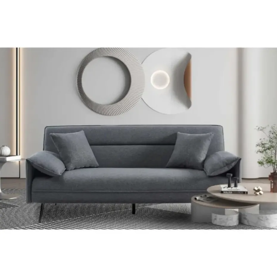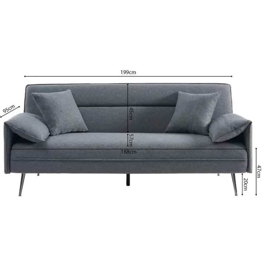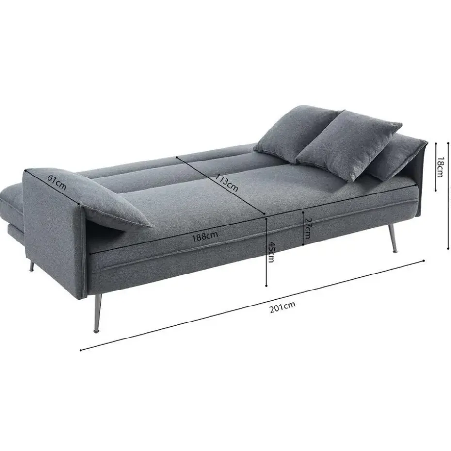 De slaapbank Sivas Grey biedt zowel stijl als functionaliteit met zijn strakke ontwerp en praktische functies. Deze slaapbank is gemaakt van een duurzaam frame van eucalyptushout, wat een lange levensduur en stabiliteit garandeert. De koudschuimmatras biedt optimaal comfort en zorgt voor een goede nachtrust of een gezellige zitervaring. Met afmetingen van H-H 95 x B-L 199 x D-P 89 cm past hij perfect in elke woonruimte. Hij dient niet alleen als comfortabele zitplaats, maar kan ook moeiteloos worden getransformeerd in een bed, waardoor hij ideaal is voor gasten of wanneer extra slaapruimte nodig is. De grijze kleur voegt een vleugje elegantie toe en past bij elk modern of hedendaags interieur. Upgrade je woonkamer of logeerkamer met de Slaapbank Sivas Grijs en geniet van het gemak en de veelzijdigheid die hij biedt.