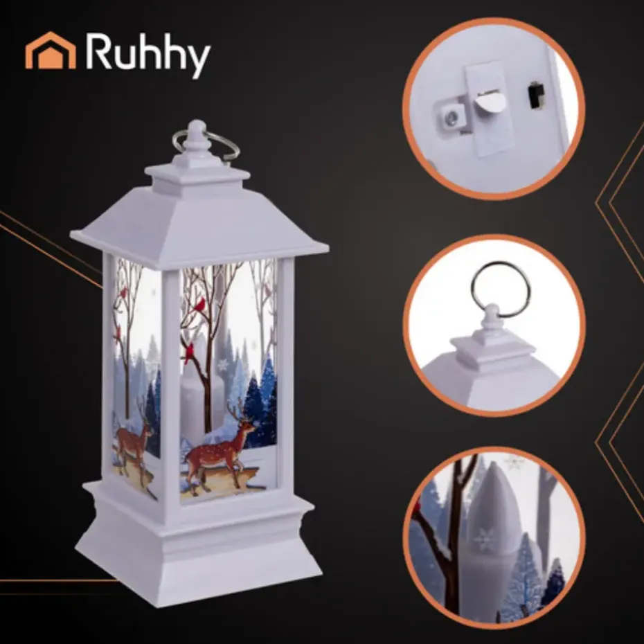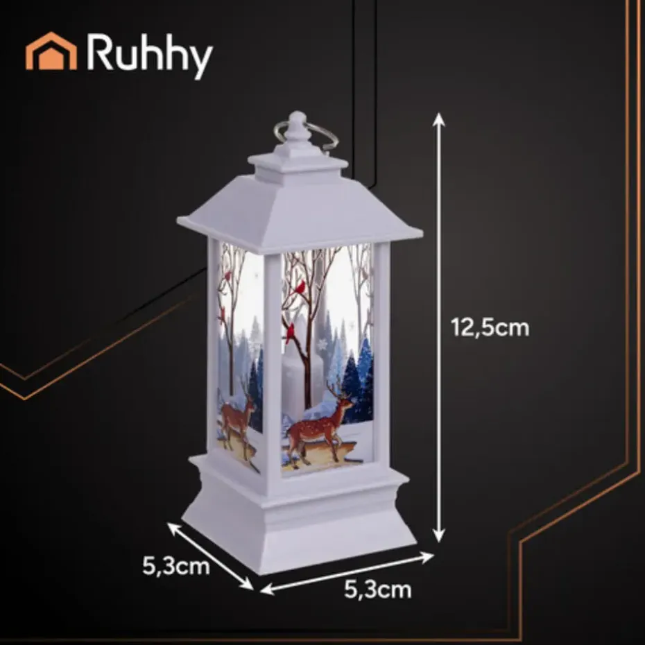 Kerstlantaarn van Ruhhy. Deze elegante RUHHY LED-lantaarn in wit voegt een stijlvol en sfeervol accent toe aan uw kerstversiering. Binnenin imiteert een energiezuinige LED-kaars op batterijen een warm, gezellig en volkomen veilig licht, zonder open vlam. Versierd met fijne kerstmotieven, creeert dit ornament direct de magie van de feestdagen in elke ruimte. Dankzij het draadloze ontwerp en de compacte afmetingen (12 x 5 x 5 cm) kan de lantaarn overal worden geplaatst, van de vensterbank tot de kersttafel.