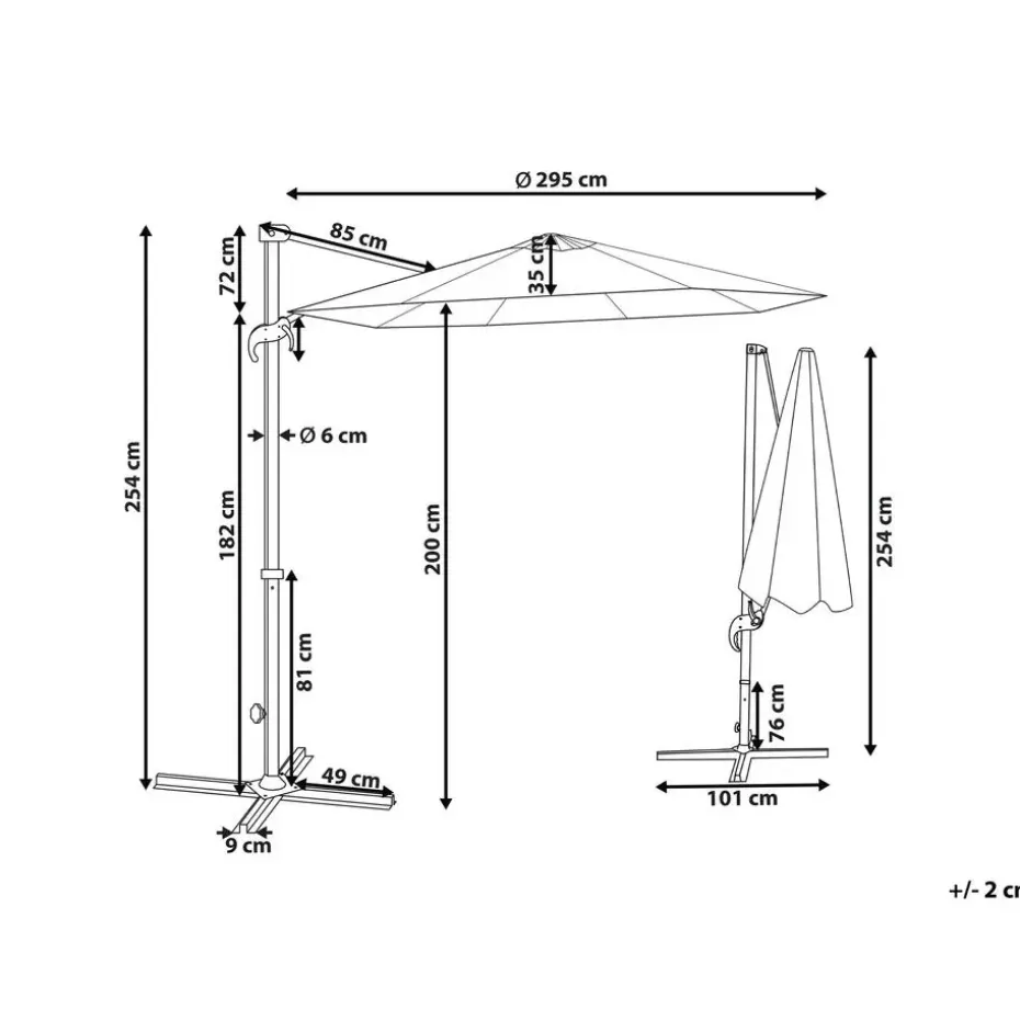 Belangrijkste eigenschappen: Eenvoudig te gebruiken open krukmechanisme, 360° roterend en kiepend scherm, Kruisvoet Geschikt voor parasolgewichten, Trendy design en kleur, Moderne uitstraling en kwaliteit voor vele jaren, UV-bestendigheidsklasse