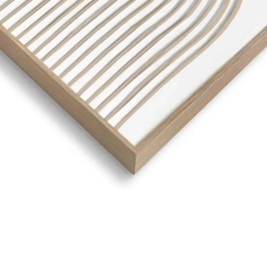 Handgemaakte wanddecoratie met abstract reliëf in wit gips omkadert door een houten lijst. Het scandinavisch minimalisme met 3d-textuur past in de meeste moderne woonstijlen zoals basic, vintage, urban of industrieel. Kenmerken