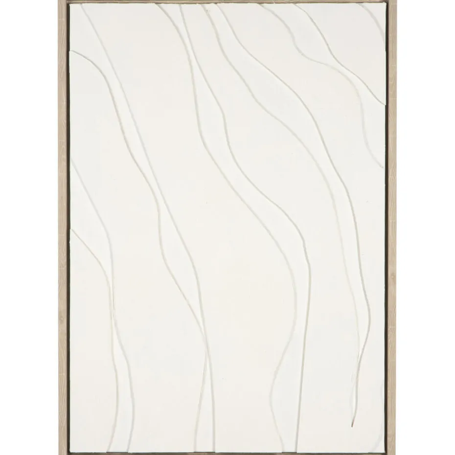 Dit schilderij Organic heeft een formaat van 70×50 cm en is uitgevoerd in een bruine MDF-lijst met zichtbare houtnerven, wat zorgt voor een warme, natuurlijke uitstraling. Het doek zelf is off-white en toont een reeks verticale, niet-symmetrische wiebellijntjes die zorgen voor een organisch en rustgevend patroon. Deze abstracte lijnen brengen beweging en zachtheid in het ontwerp, zonder overheersend te zijn. Dankzij de neutrale kleuren en het subtiele lijnenspel past het schilderij moeiteloos in diverse interieurstijlen, van modern tot Scandinavisch. Als je op zoek bent naar een stijlvol, natuurlijk en rustgevend kunstwerk dat eenvoudig te combineren is, dan is schilderij Organic een goede keuze.