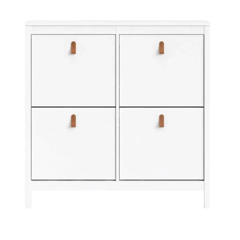 Berg je schoenen netjes en stofvrij op in deze handige schoenenkast Madeira De schoenenkast heeft 4 kleppen en biedt plaats voor ongeveer 15 paar schoenen. Dankzij de stijlvolle vormgeving past de schoenenkast vrijwel in ieder interieur en neemt door zijn diepte van 25 cm niet veel ruimte in beslag.