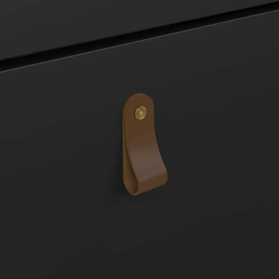 Wat dit kastje extra bijzonder maakt zijn de greepjes. Je krijgt bij dit kastje standaard 2 verschillende greepjes . Er worden zilverkleurige en de cognackleurige lederen greepjes meegeleverd. Aan jou de keuze.