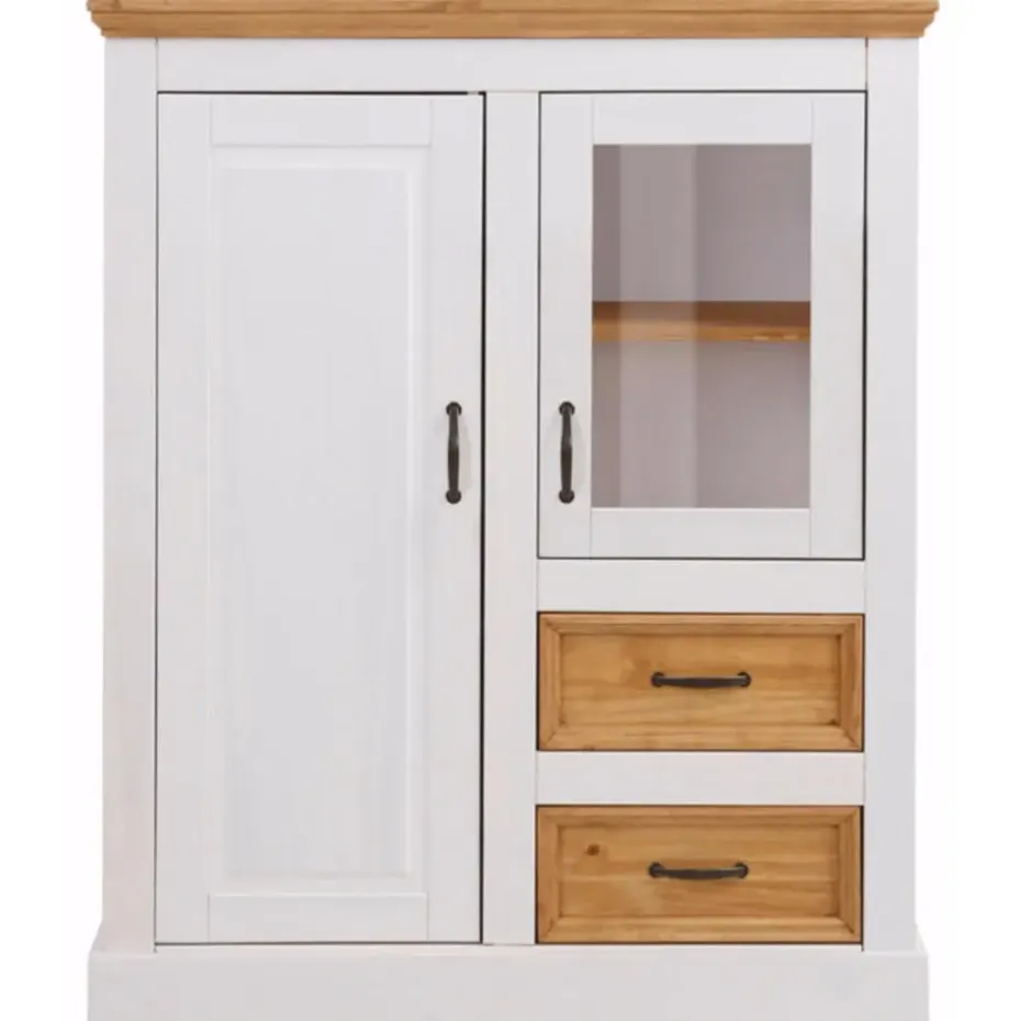 Dit FSC-gecertificeerde wandmeubel is een veelzijdig meubel in de klassieke landhuisstijl. Het is een elegante toevoeging aan de woonkamer of eetkamer en biedt veel extra opbergruimte. Achter verschillende lades en deuren is er ruimte voor een grote verscheidenheid aan keukengerei en voorwerpen. De zichtbare opbergruimte biedt veel ruimte voor decoratie. De kast dankt zijn charme aan de combinatie van gecoate oppervlakken en natuurlijk ogende houten elementen, met hun duidelijk zichtbare, voelbare houten structuur. De antieke metalen handgrepen maken de look compleet.