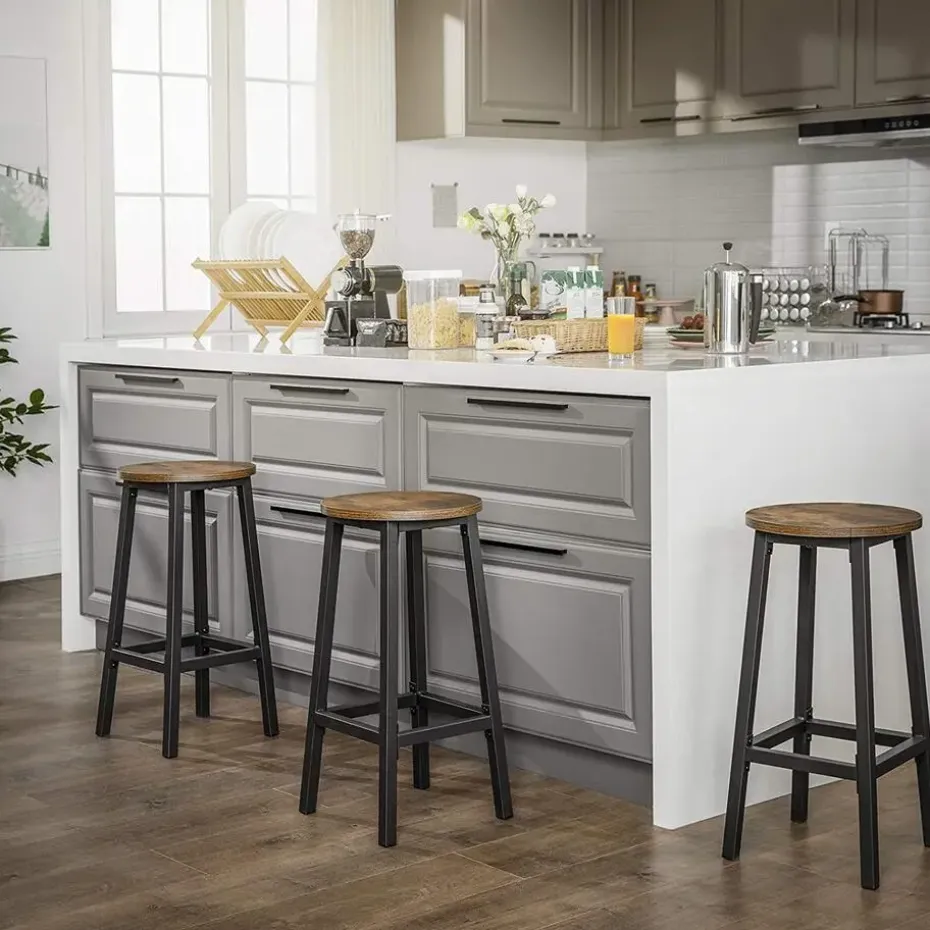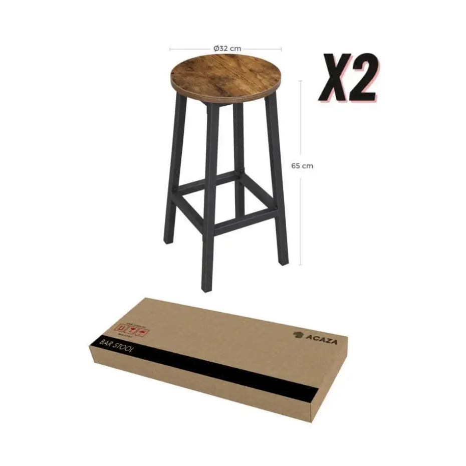 Besteed een rondje en breng een toast uit met vrienden en familie! Ga op deze twee ronde barstoelen zitten en geniet van een paar leuke uurtjes. Dankzij de compacte afmetingen van Ø 32 x 65 cm kunnen de twee krukken gemakkelijk onder de meeste bartafels worden geschoven als ze niet worden gebruikt. Deze industriële barkrukken hebben elk een max. draagvermogen van 150 kg.