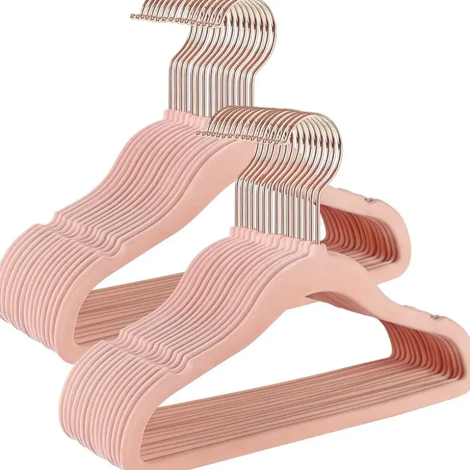 Vallen kleren vaak op de vloer van de kleerkast? Deze 30 lichtroze en zachte fluwelen kleerhangers houden de kinderkleren stevig op hun plaats.