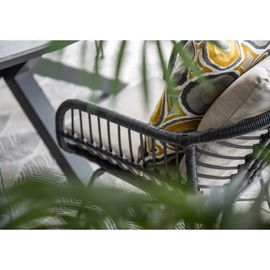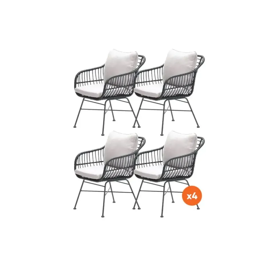 Dit is 4x de Margriet tuinstoel van het bekende tuinmeubelmerk Garden Impressions. De Margriet tuinstoel heeft een lichte retro look, maar is helemaal van deze tijd. Het gebruikte wicker -of rotan zoals sommige dit noemen- geeft die vintage look. Waarbij de rest van het design volledig trendy is! Een prachtige combinatie die perfect werkt voor deze tuinstoel van Garden Impressions. Het zwarte wicker steekt mooi af tegen de zandkleurige kussens. Een waar genot om in te zitten als naar te kijken!