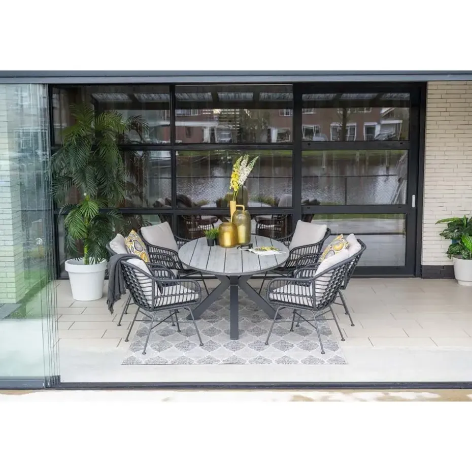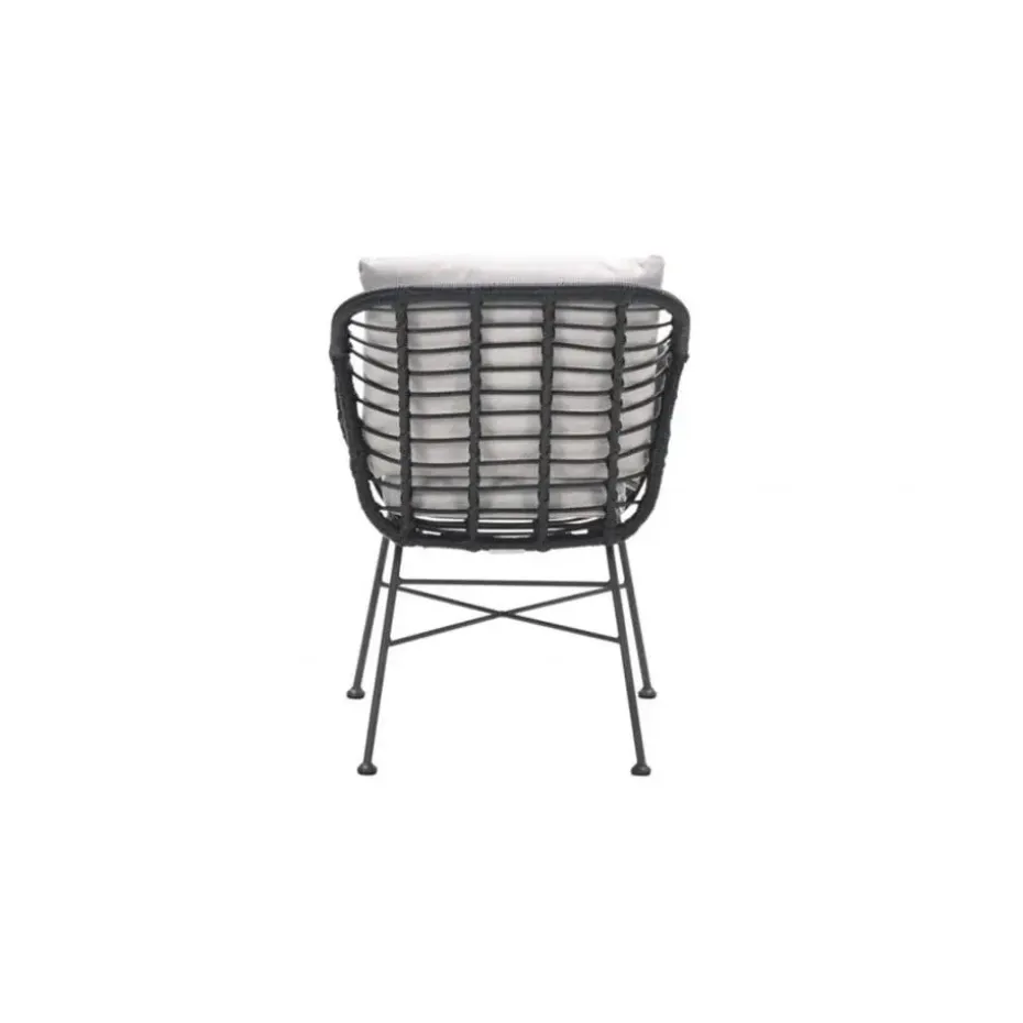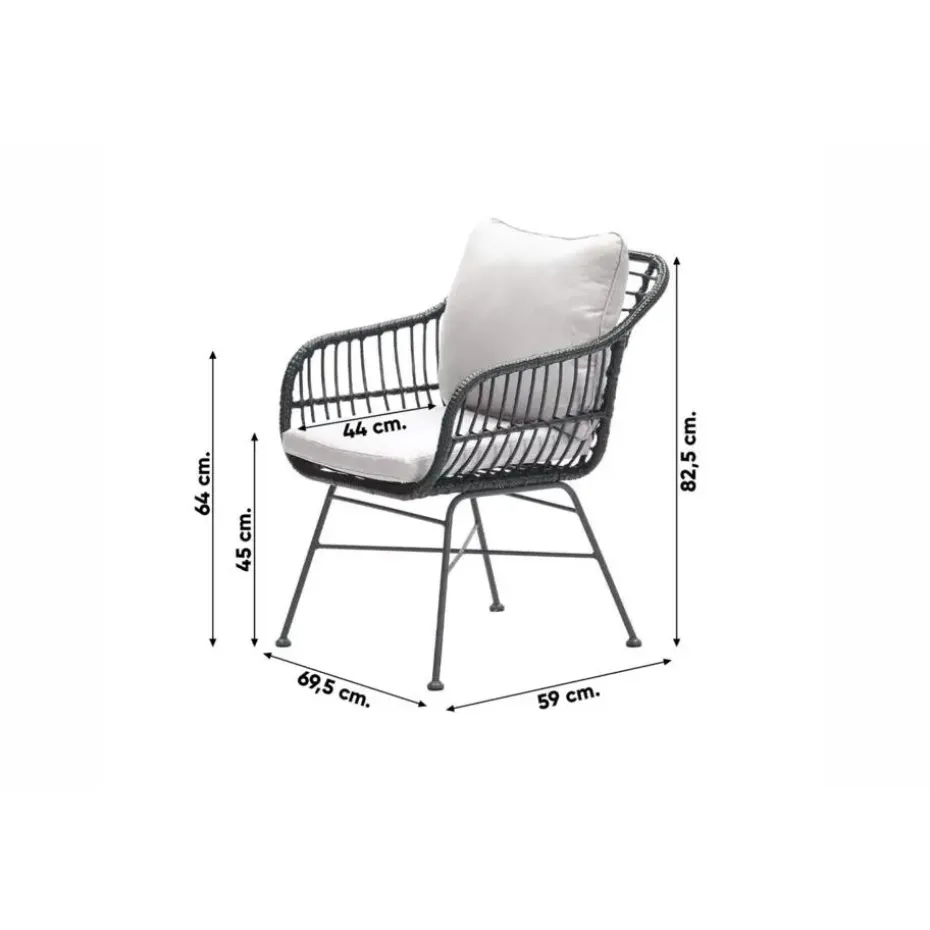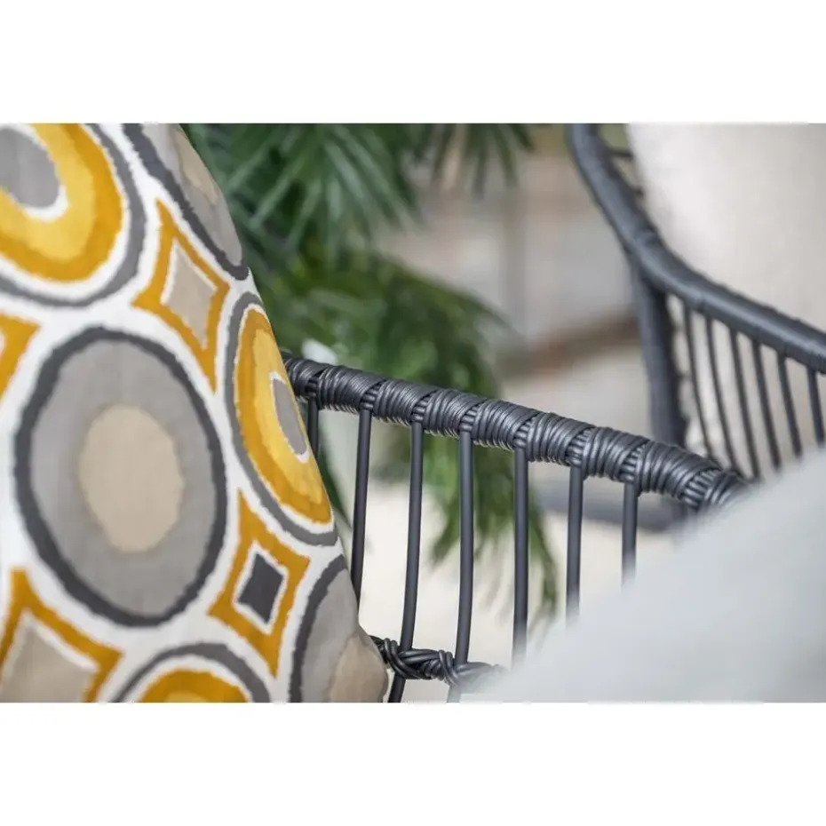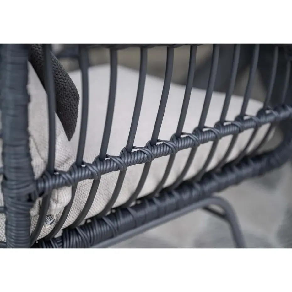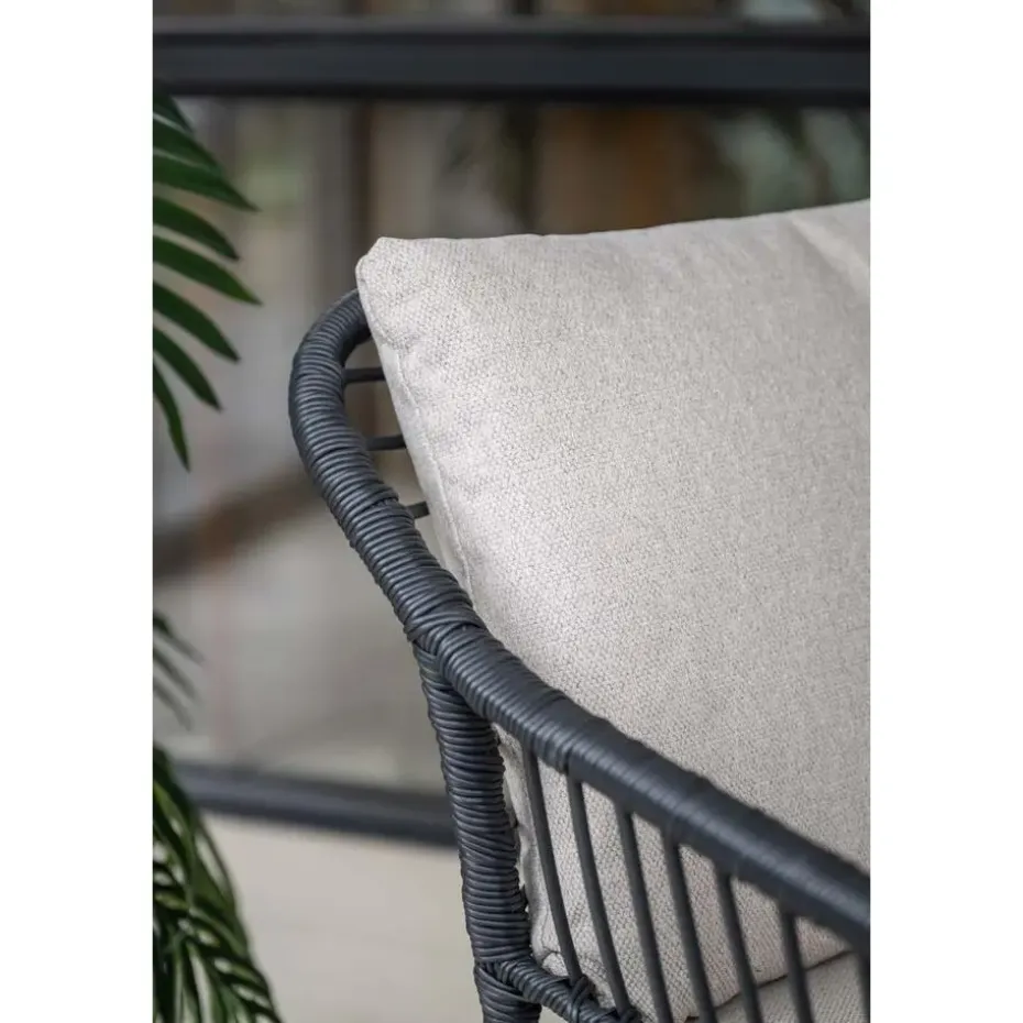 Het frame van de Margriet tuinstoel is gemaakt van staal. Een onderhoudsvriendelijk materiaal dat bestand is tegen de meeste weersinvloeden. Daarbij is het licht van gewicht en erg stevig! Om het frame is zwart wicker gevlochten. Dit geeft de unieke uitstraling aan deze stoel. De meegeleverde kussens hebben een zandkleur die helemaal van deze tijd is. De kussens hebben ook een waterafstotende coating. Dit betekend niet dat ze waterdicht zijn, wel kan je gemorst drinken er zo vanaf vegen!