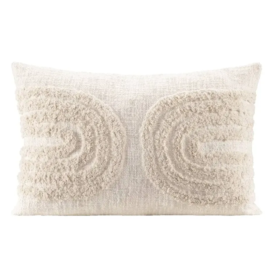 Sierkussen Mels is off-white en heeft een afmeting van 40×60 cm. Het kussen heeft een leuk tufted boog dessin en is gemakkelijk te combineren met andere dessins en uni kussens. Maak je huis gezellig met stoere, zachte of stijlvolle kussens. Leg het kussen op de bank, je bed of vrolijk er een fauteuil mee op. Sierkussens staan eigenlijk overal leuk. Combineer diverse kussentjes en maak het extra gezellig! Kies bijvoorbeeld voor een effen kussentje en een kussentje met patroon of kies voor diverse kussentjes met een patroon in dezelfde kleur. Je kunt ook combinaties maken op thema en/of materiaal. Kortom: alles kan en alles mag!