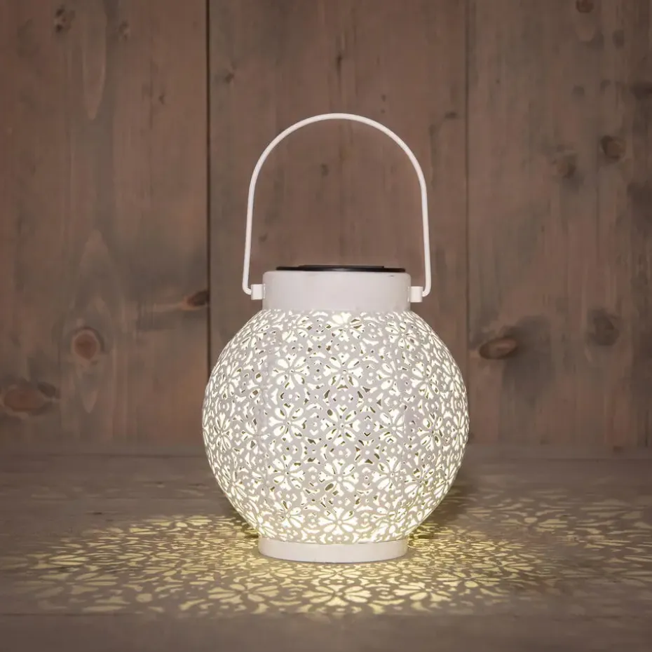 Maak je terras of balkon sfeervol met de ronde solar lantaarn met design. Geef de lantaarn een centraal plekje om zowel overdag als in de avond van het windlicht te genieten. Ook leuk om cadeau te geven aan vrienden en familie. De brandduur hangt af van de weersomstandigheden, 8 uur volle zon zorgt voor een maximaal aantal branduren. De tafellamp heeft warm wit licht.