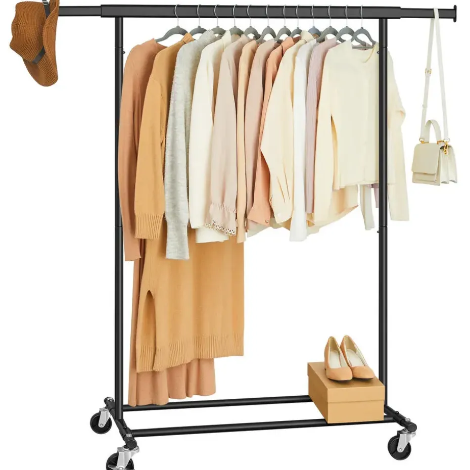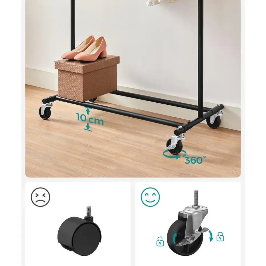 Upgrade je kledingopslag met het kledingrek uit de Astrid-reeks. Het zwarte design geeft een eigentijdse en verfijnde uitstraling aan elke ruimte. Met een combinatie van functionaliteit en modern design biedt dit kledingrek een ideale oplossing voor het organiseren van je garderobe.