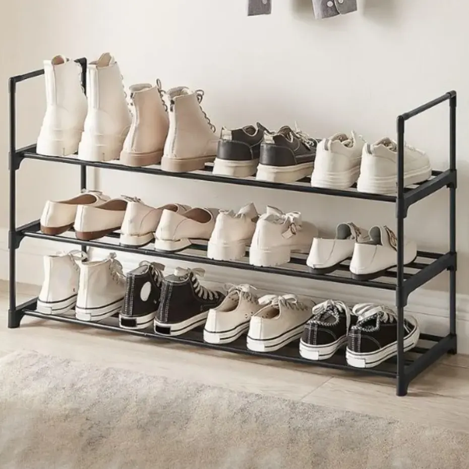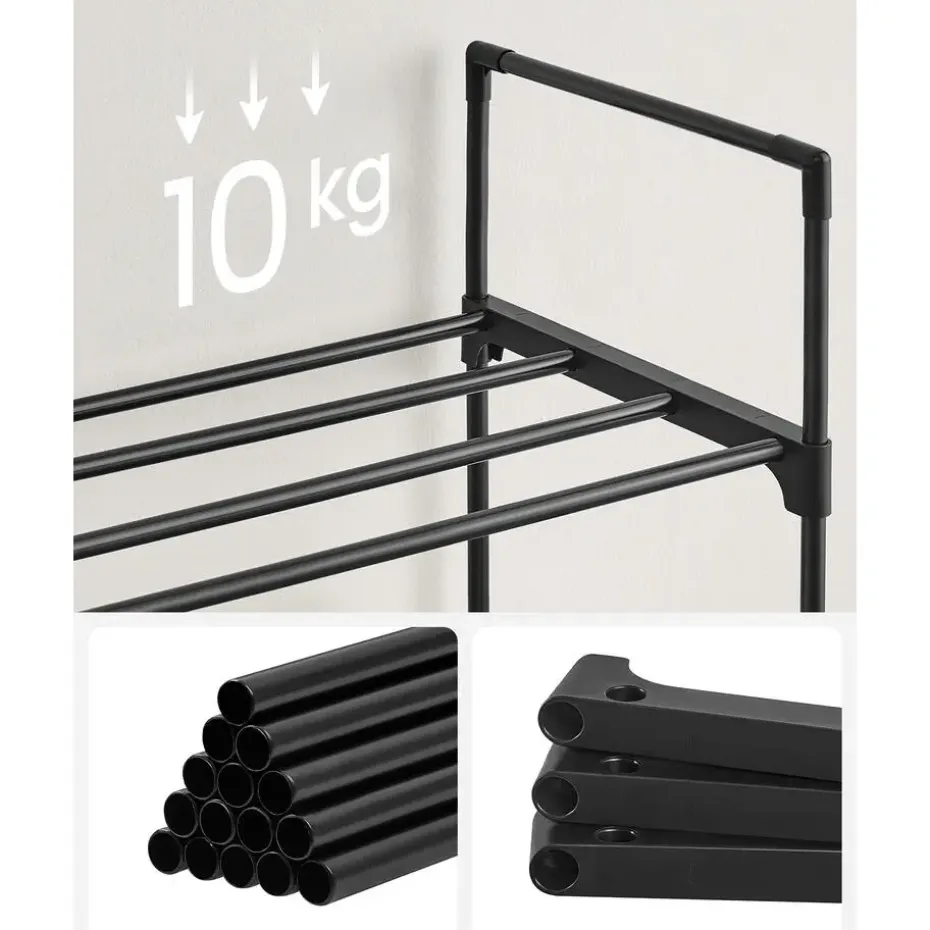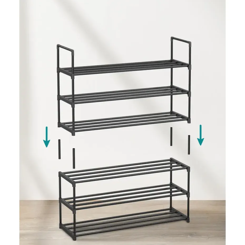 Het schoenenrek uit de Pedri-reeks is niet alleen een praktisch opbergmeubel, maar ook een stijlvolle toevoeging aan elke ruimte. Met een eigentijds zwart design straalt het een moderne elegantie uit. De afmetingen van 92 centimeter lengte, 30,5 centimeter breedte en 55 centimeter hoogte maken het ideaal voor compacte ruimtes zoals gangen, slaapkamers of kasten. De doordachte indeling biedt voldoende ruimte voor het netjes organiseren van schoenen, waardoor het niet alleen functioneel is, maar ook bijdraagt aan een opgeruimde en georganiseerde leefomgeving. Het duurzame materiaal en de hoogwaardige afwerking zorgen voor een langdurig gebruik, waardoor dit schoenenrek een waardevolle investering is voor iedereen die op zoek is naar zowel stijl als praktisch nut in hun interieur.